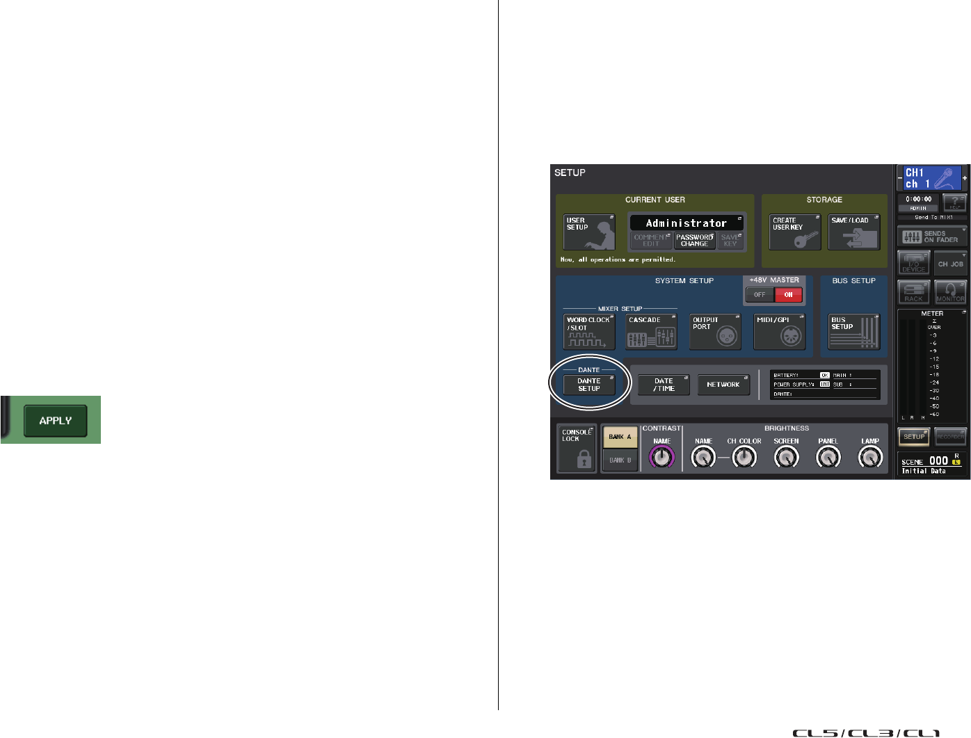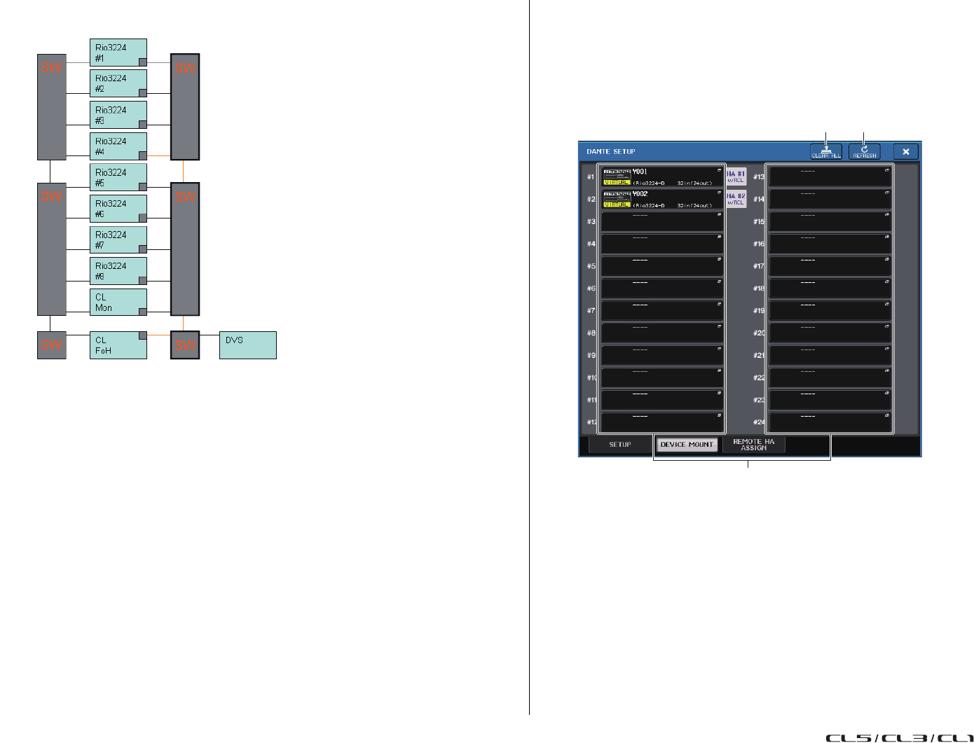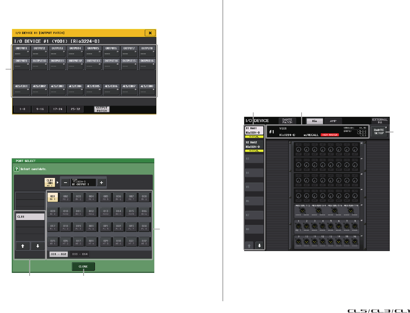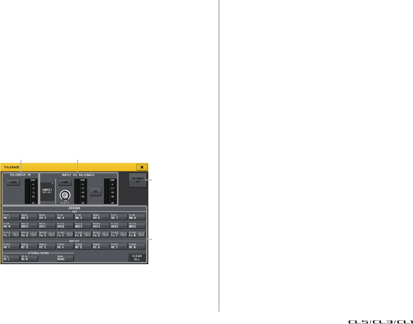 - Assignation interne de la console CL et assignation du réseau audio Dante