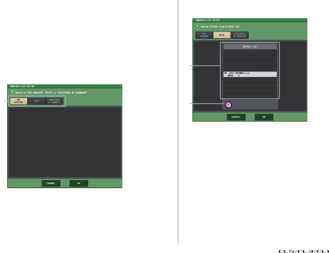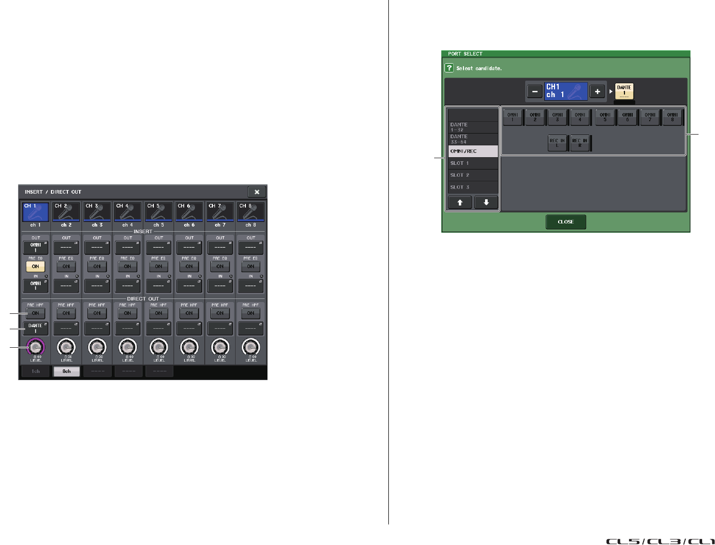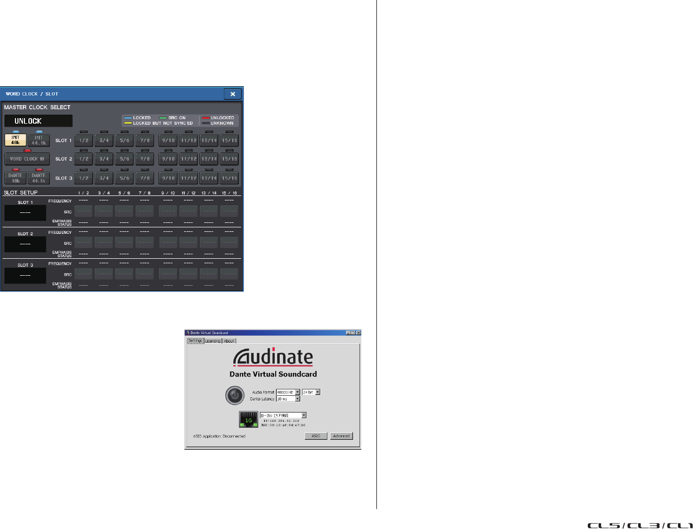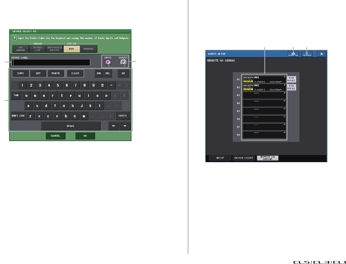 - Assignation interne de la console CL et assignation du réseau audio Dante
