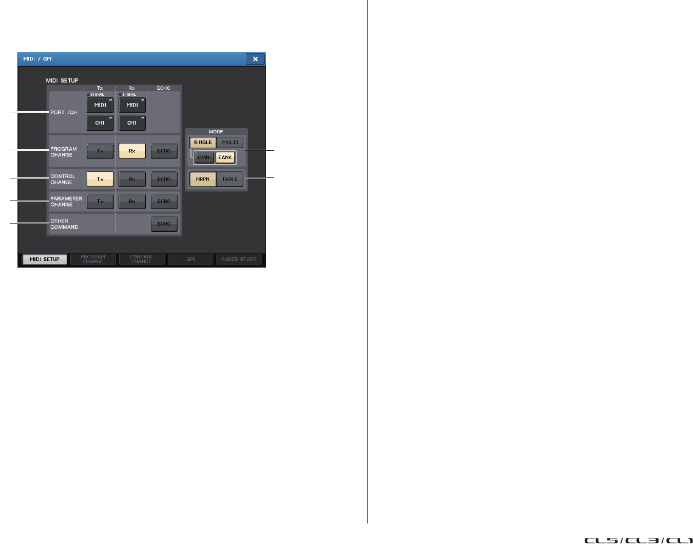 - Fonctionnalité MIDI de la console de série CL