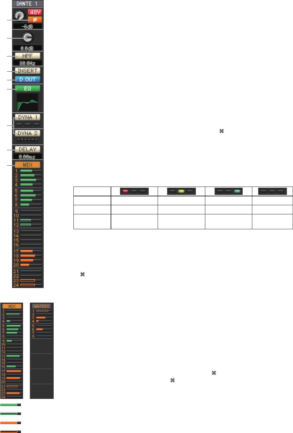・ SENDS ON FADER モード時の MIX/MATRIX の