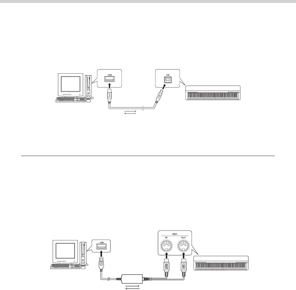 In this case, the instrument can be connected to the computer via MIDI cables and a USB-MIDI interface such as