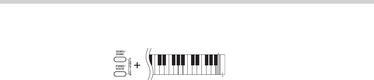 While holding down [DEMO/SONG] and [PIANO/VOICE] simultaneously, press the C7 key.