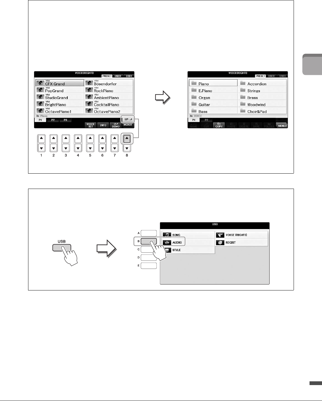 - Appel des réglages de panneau correspondant au style sélectionné (One Touch Setting (Présélection immédiate))