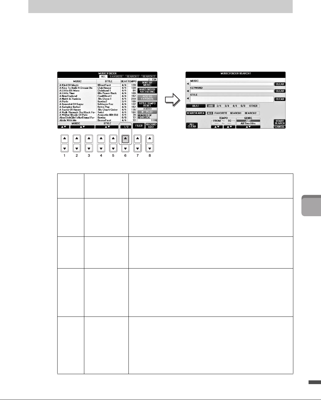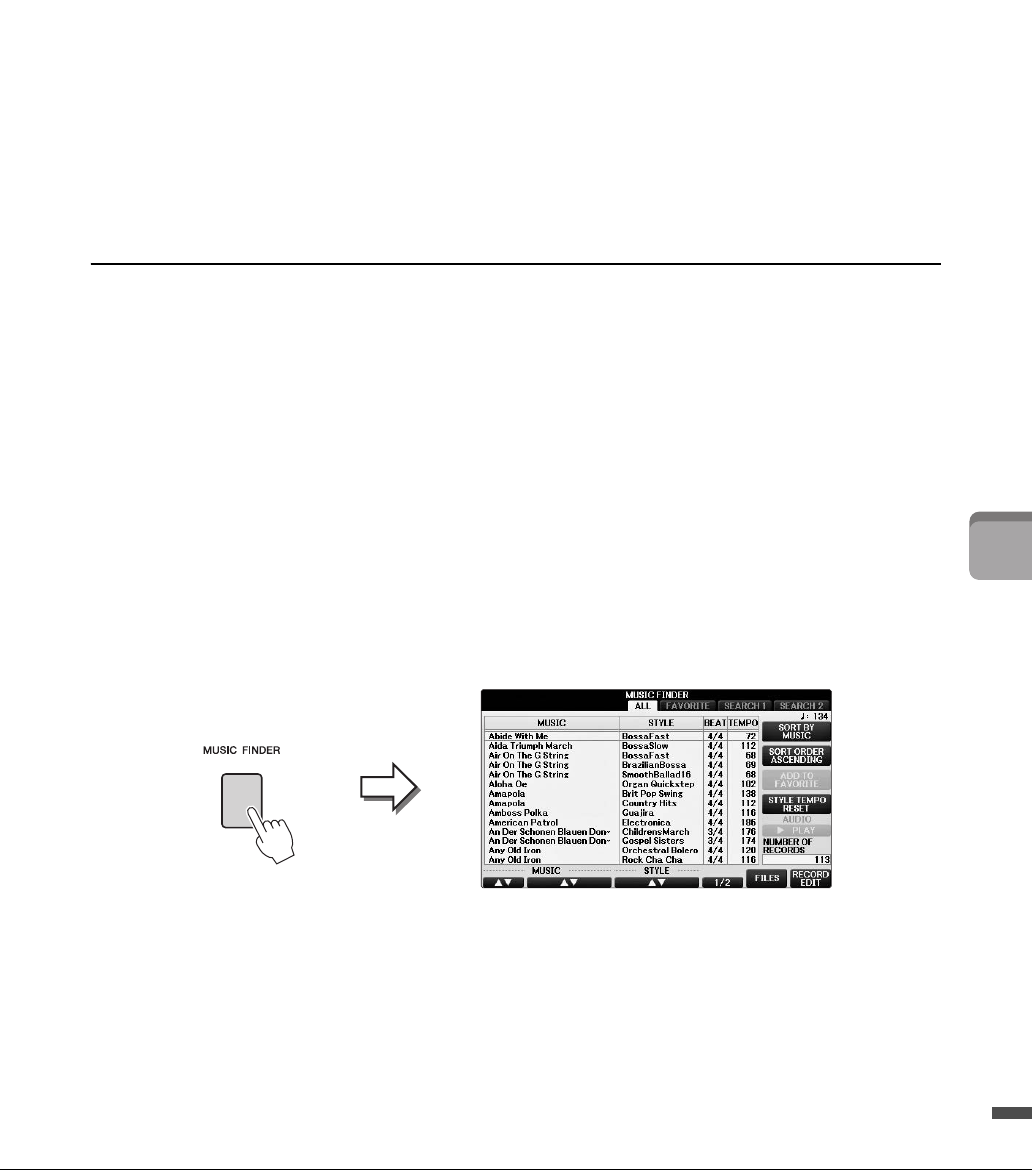 - Music Finder (Chercheur de morceaux) – Sélection des configurations idéales (sonorité, style, etc.) pour chaque morceau –