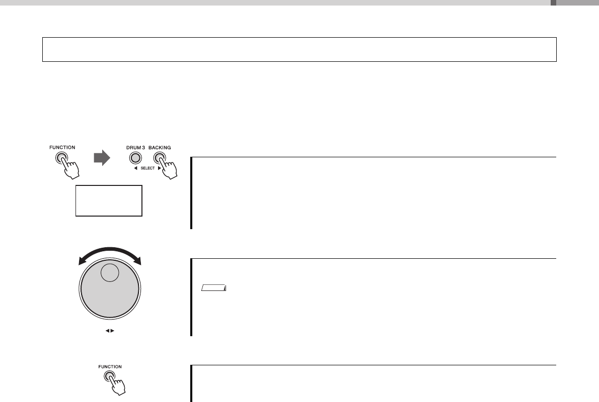 Press the [FUNCTION] button once, then press the [DRUM 3] or [BACKING] button a num-