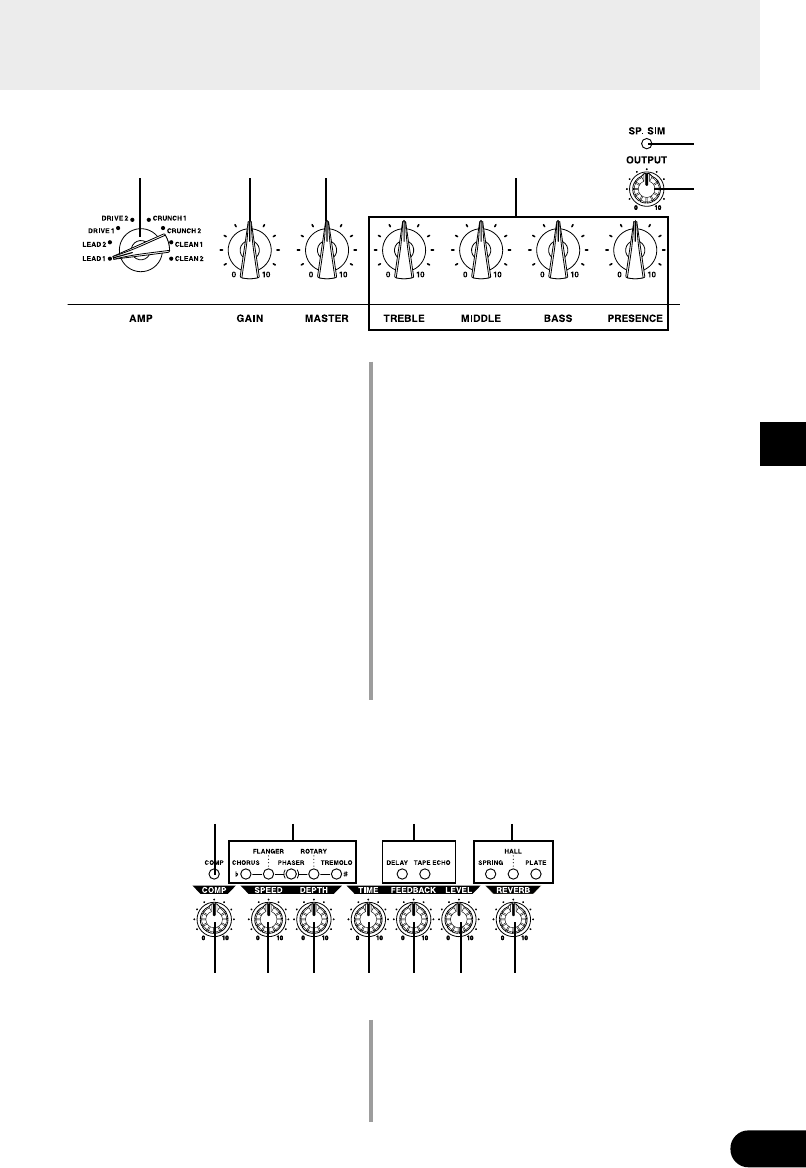 AMP SELECT, GAIN, MASTER, TREBLE,