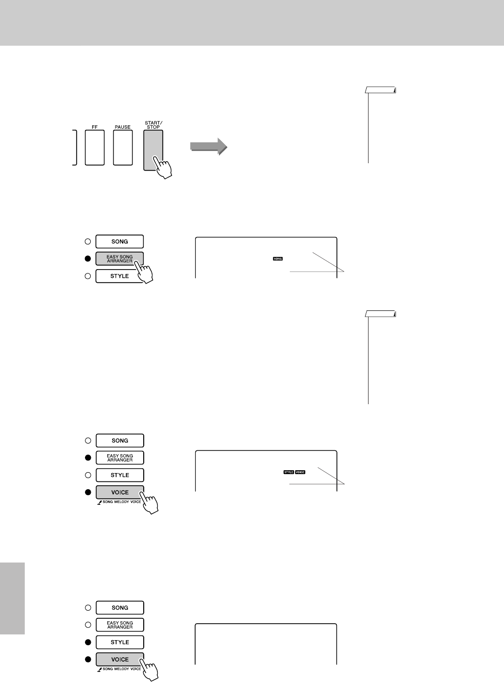 - Interpretación de un estilo con acordes pero sin ritmo (parada del acompañamiento)