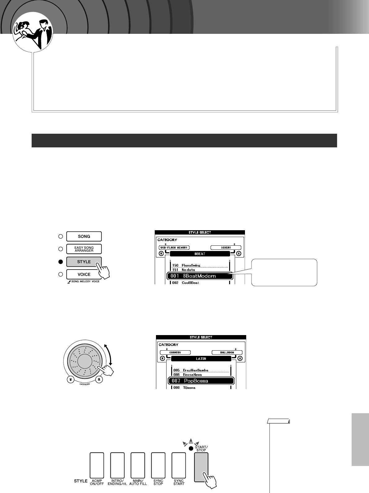 - Ajuste del volumen del estilo