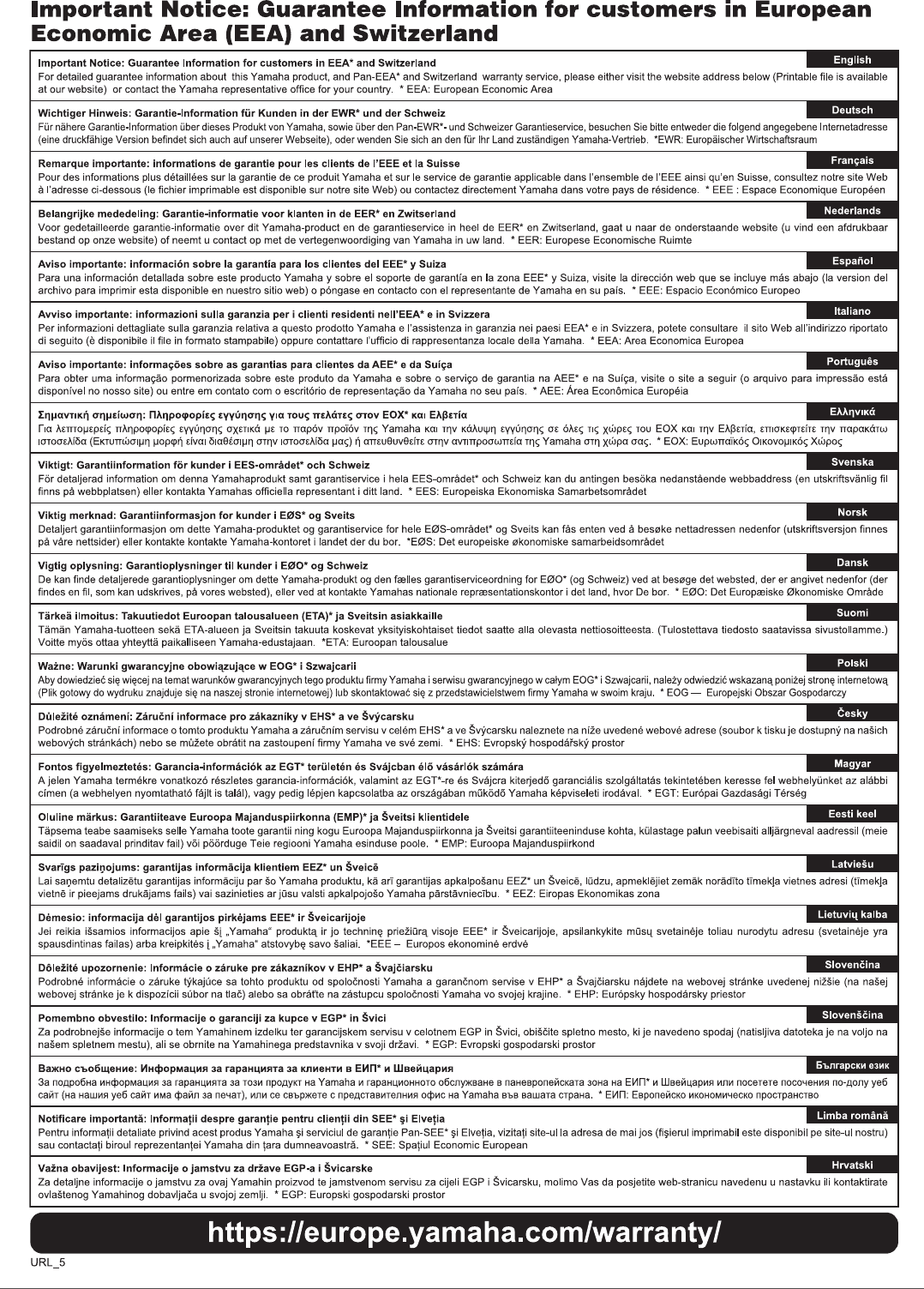 (For Europe) Importer: Yamaha Music Europe GmbH Siemensstrasse 22-34, 25462 Rellingen, Germany