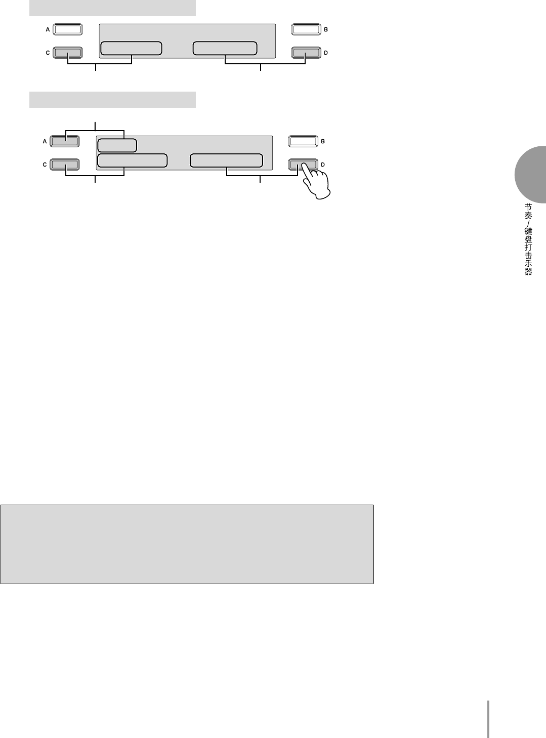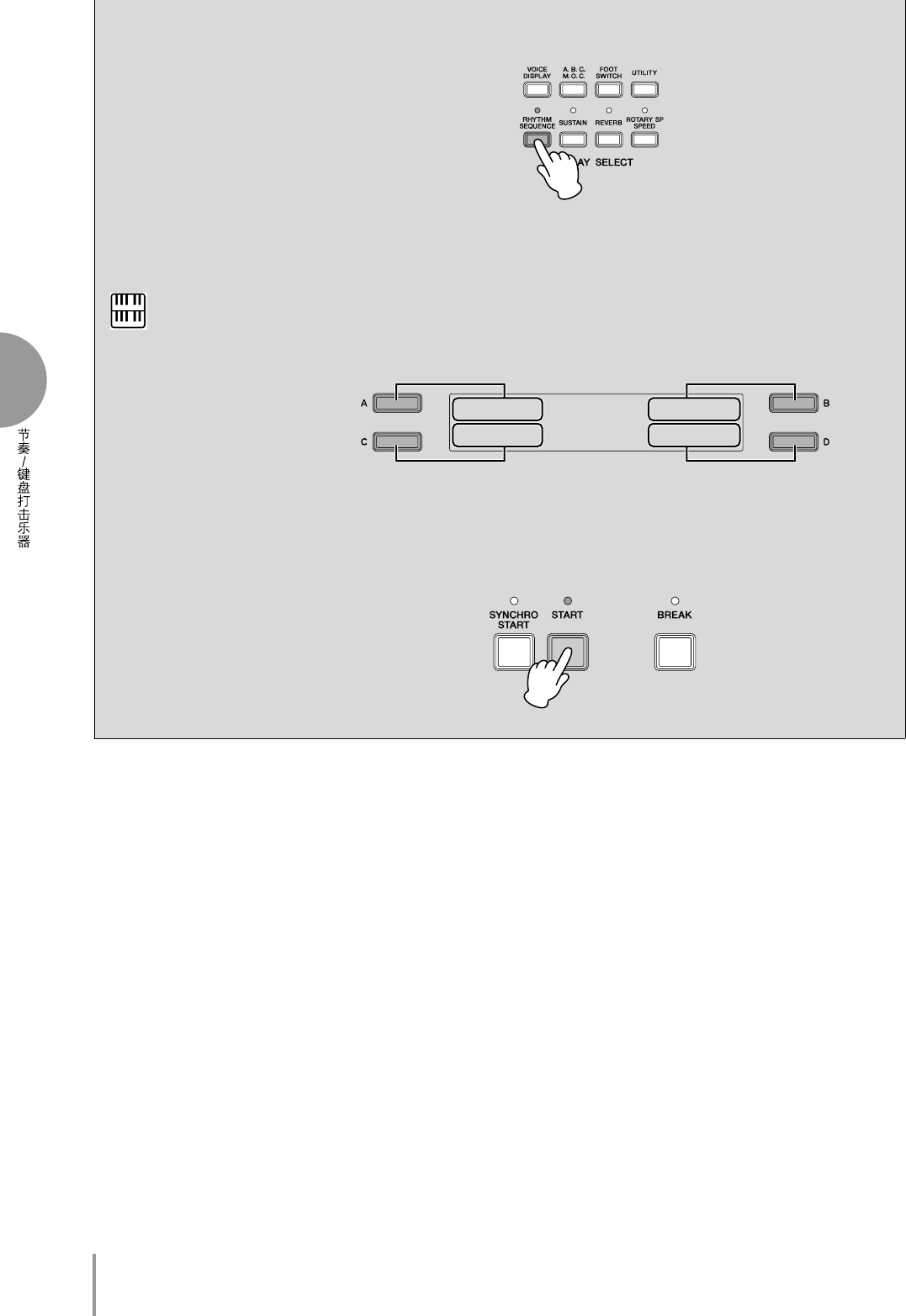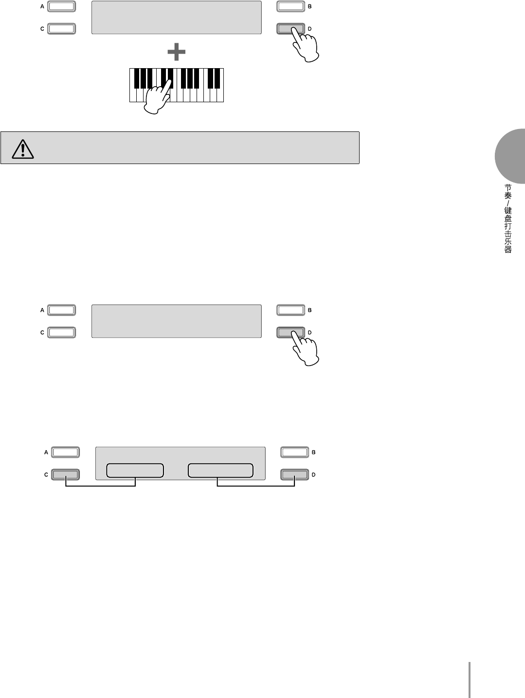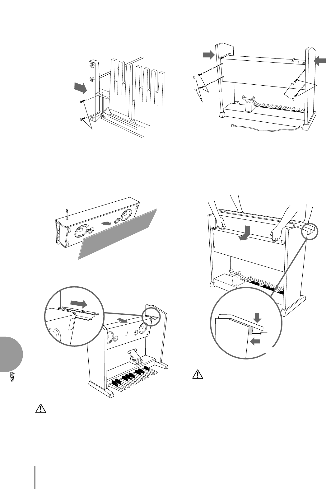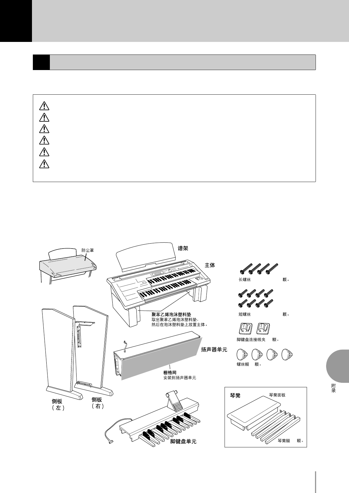 ●请勿在乐器上放乙烯或塑料或橡胶物体,否则可能使面板或