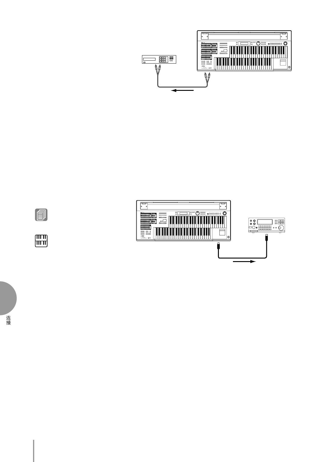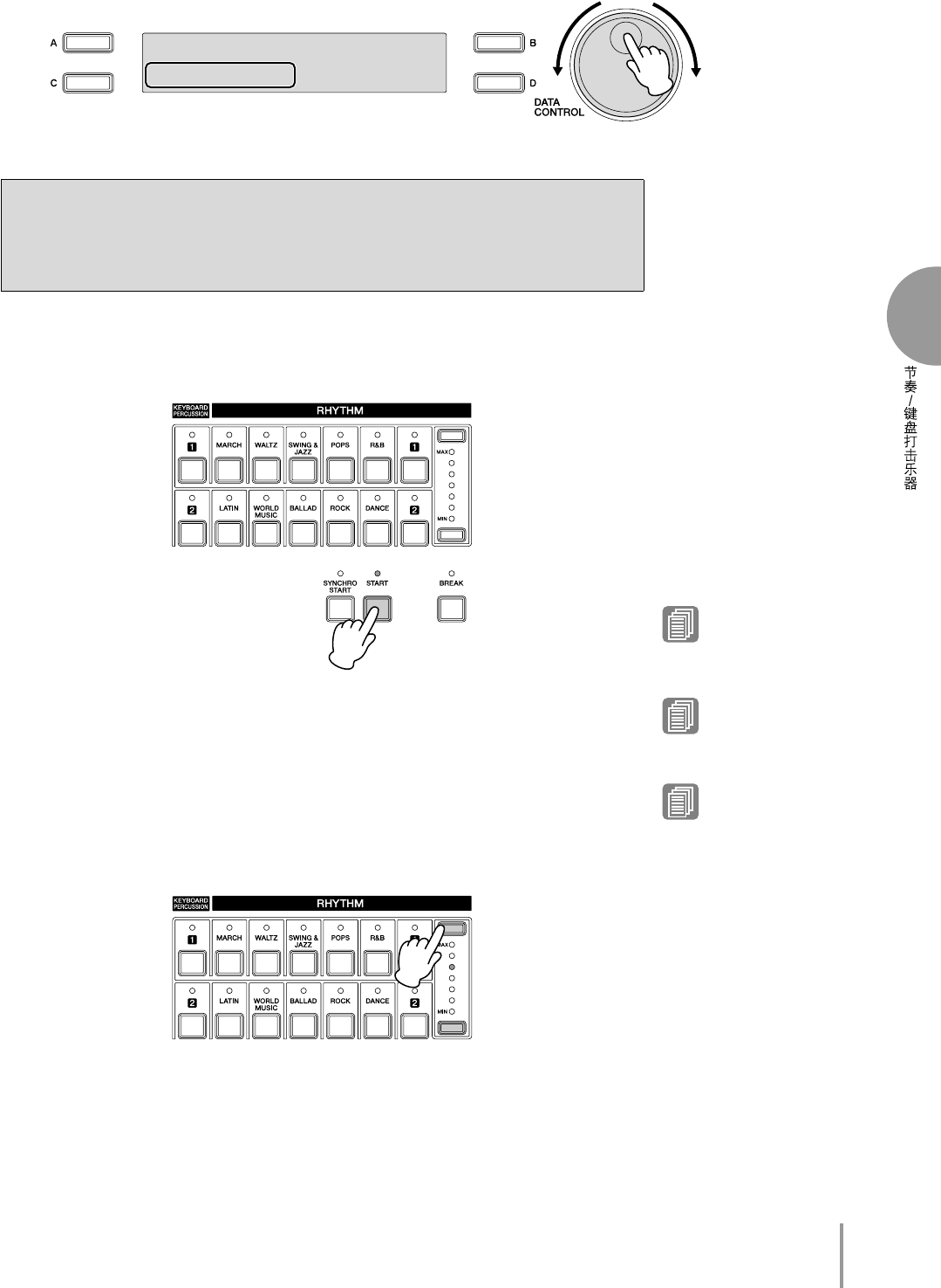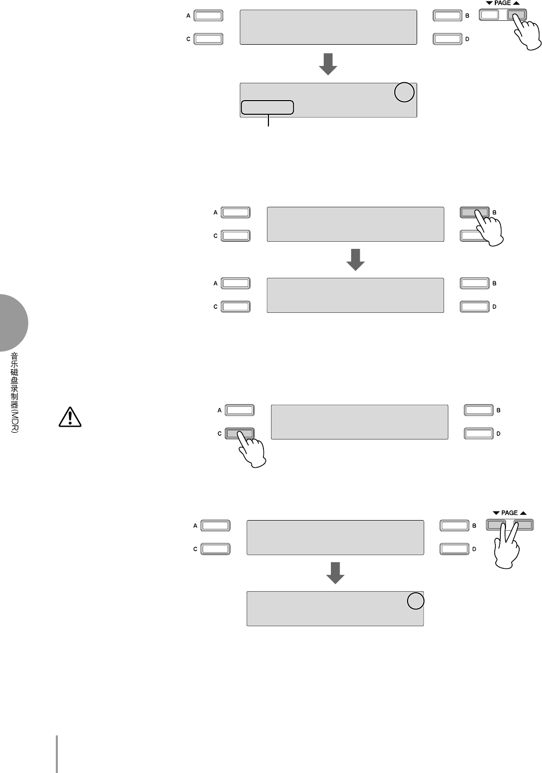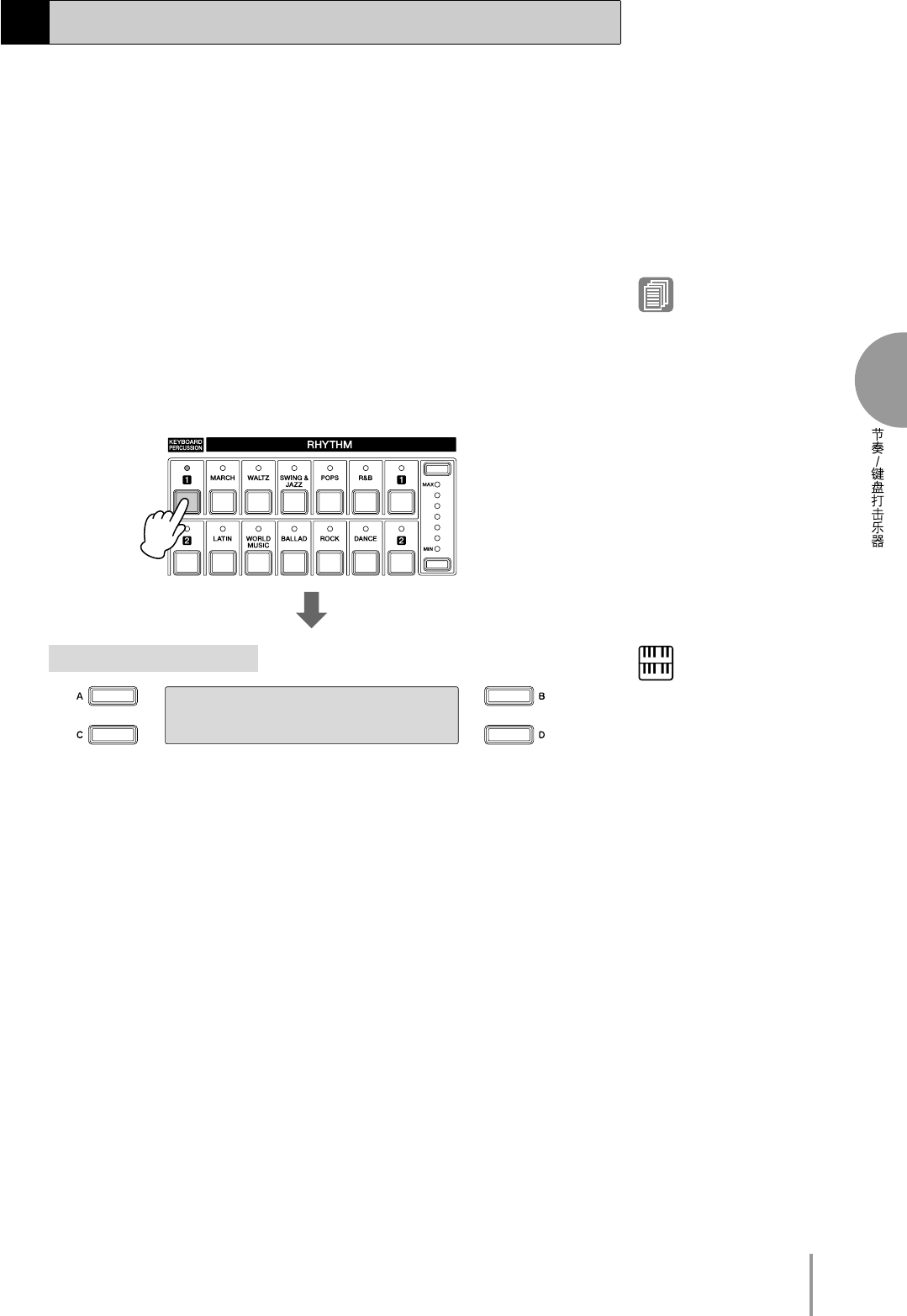 ●请勿在乐器上放乙烯或塑料或橡胶物体,否则可能使面板或