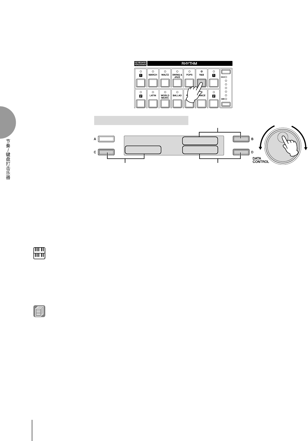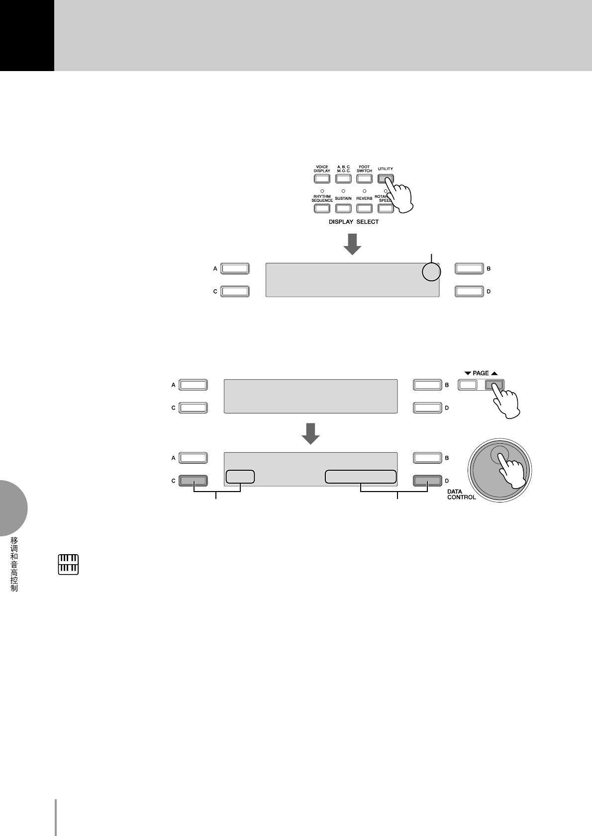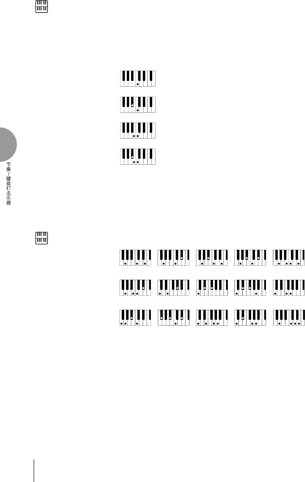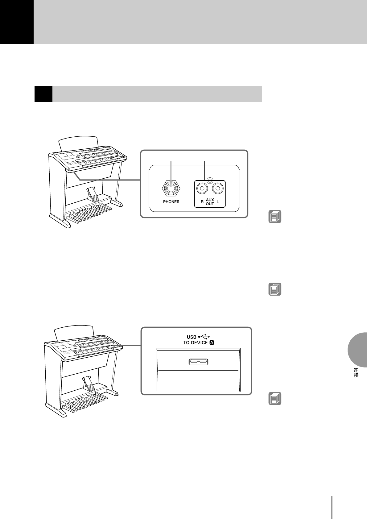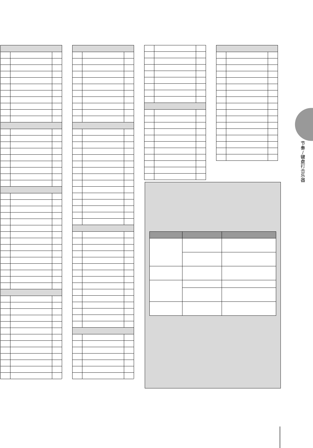 ●请勿在乐器上放乙烯或塑料或橡胶物体,否则可能使面板或