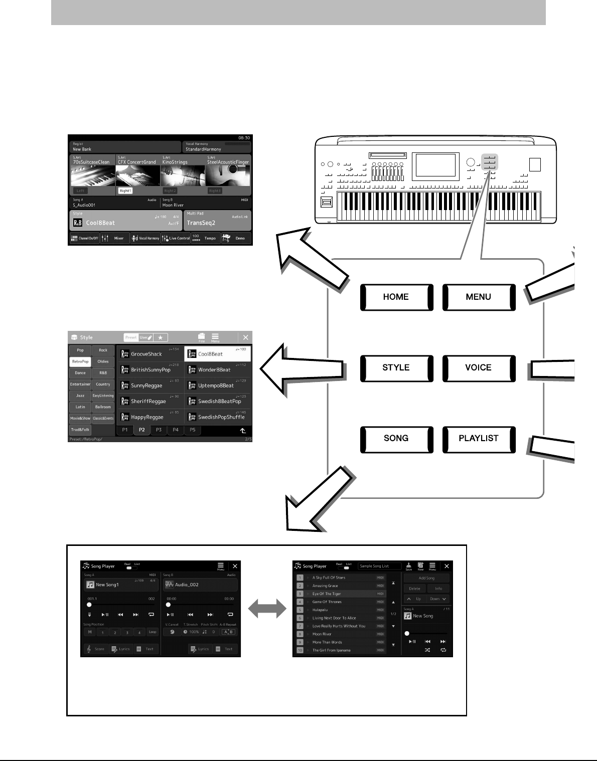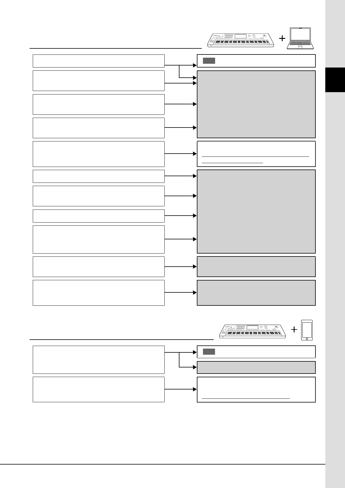 - Conexión de un iPhone/iPad (función LAN inalámbrica, [USB TO HOST] o terminales MIDI)