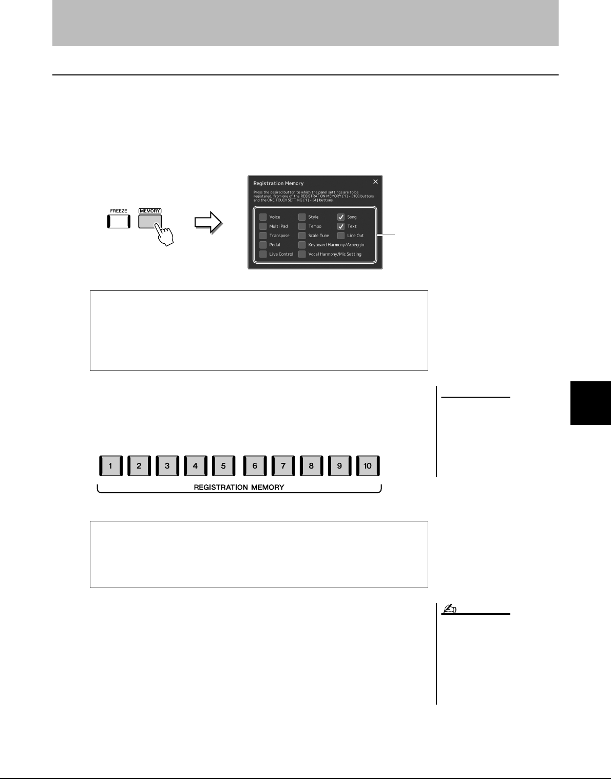 - Almacenamiento y acceso a configuraciones de panel personalizadas—Memoria de registros, lista de reproducción