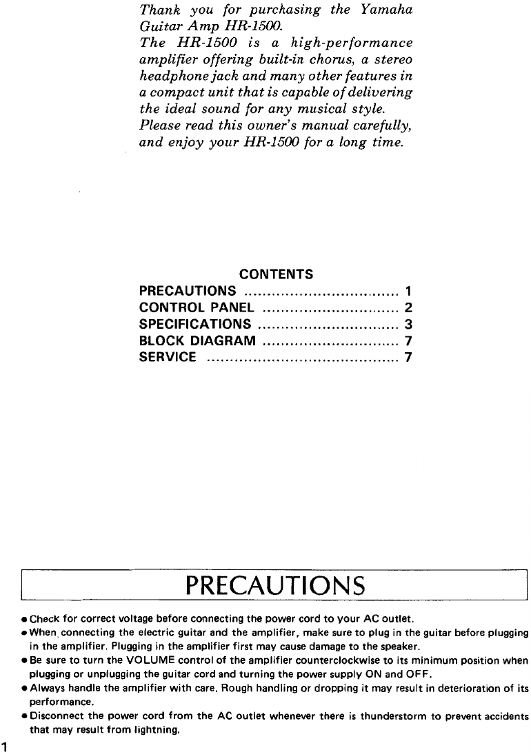 Yamaha HR 1500 Owner's Manual (Image) Hr1500 En