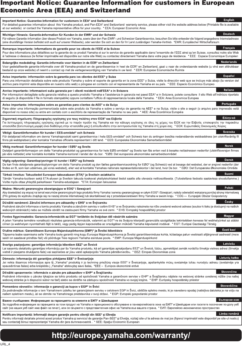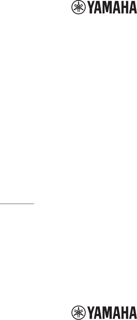 (For European Countries) Importer: Yamaha Music Europe GmbH Siemensstrasse 22-34, 25462 Rellingen, Germany
