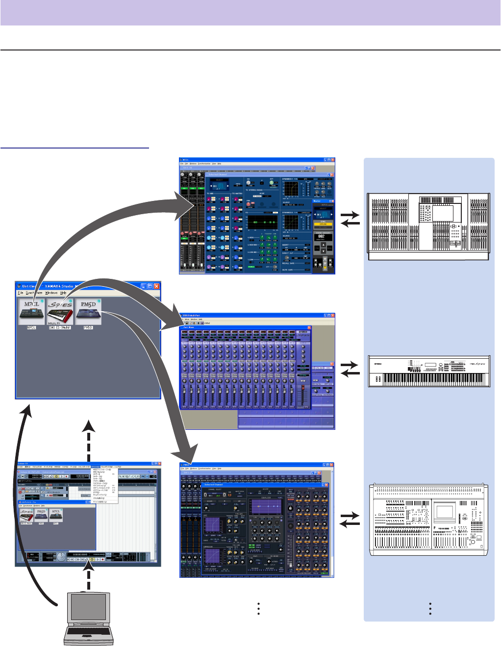 recuperando los ajustes para varios dispositivos desde Studio Manager o la aplicación DAW. Esta prestación se