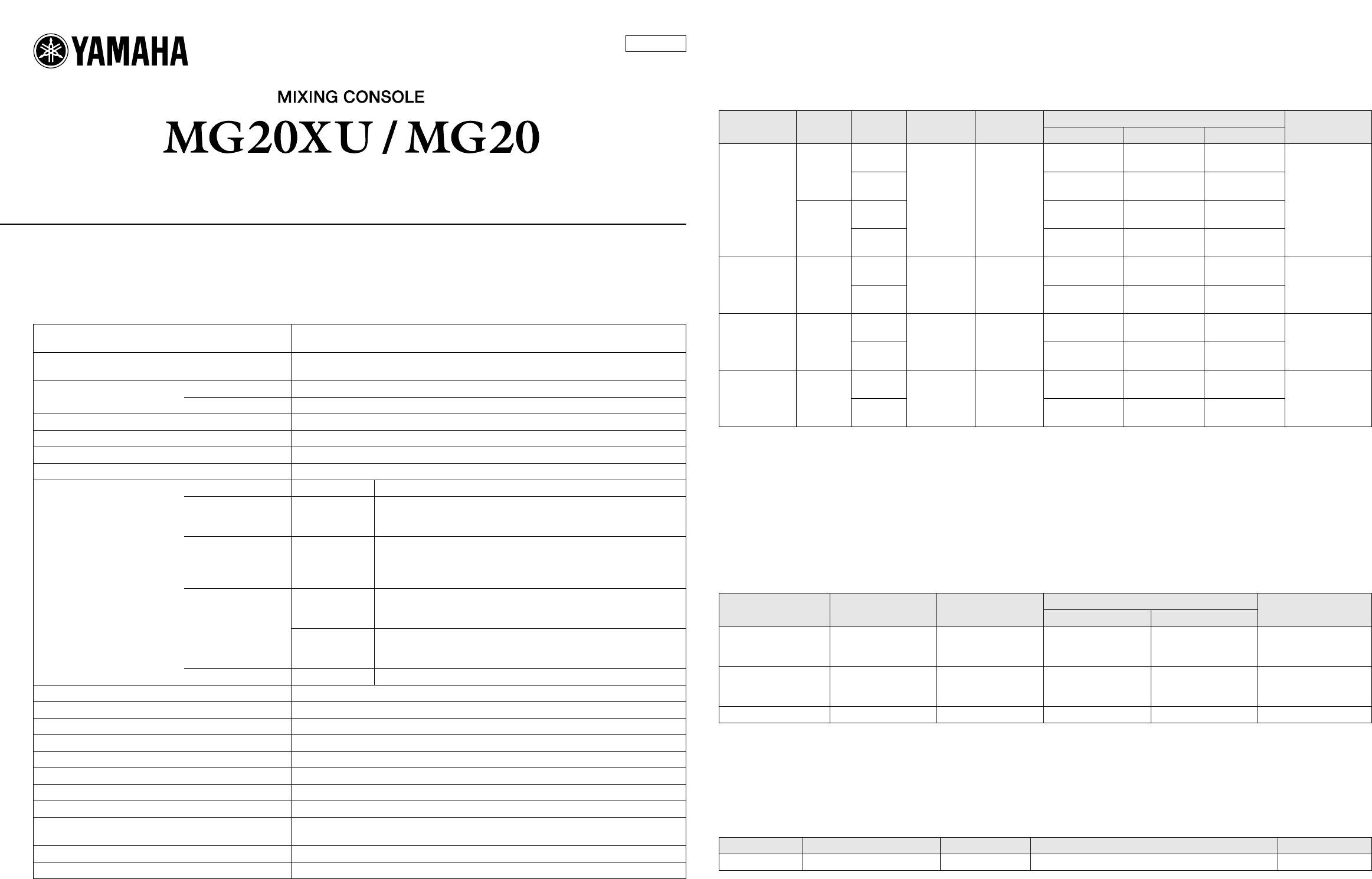Yamaha MG20XU/MG20 Technical Specifications Mg20xu En Ts E0