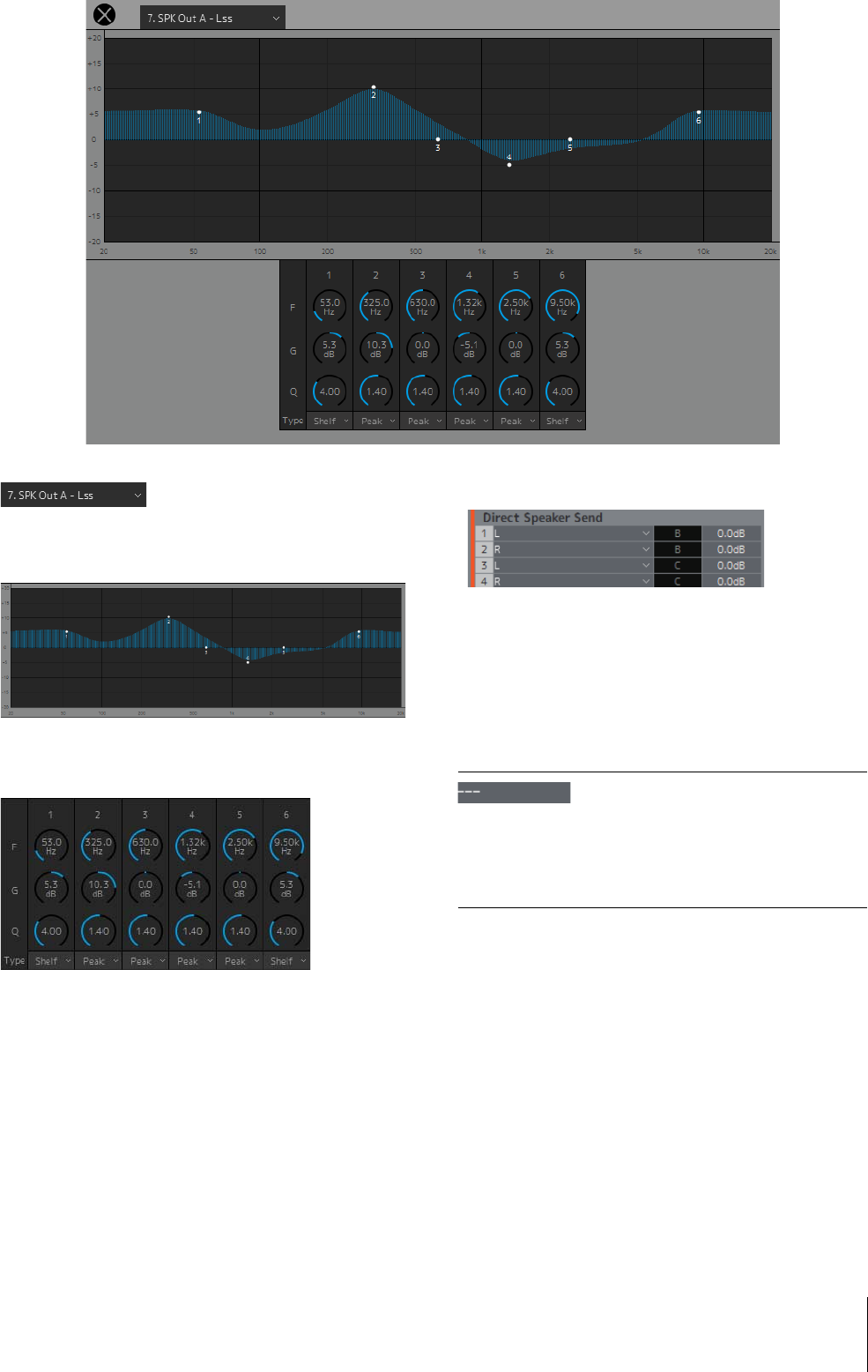 La fase di uscita è dotata di controlli trim di regolazione EQ a 6 bande, ritardo e livello e può essere utilizzata quando si