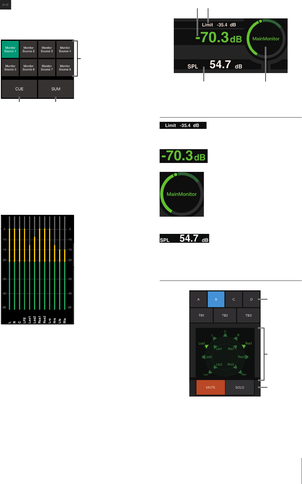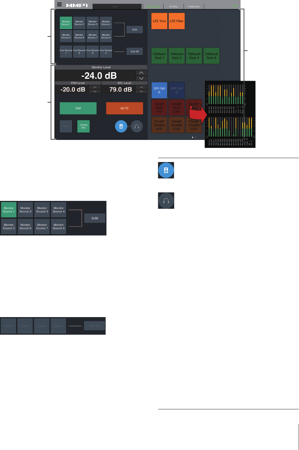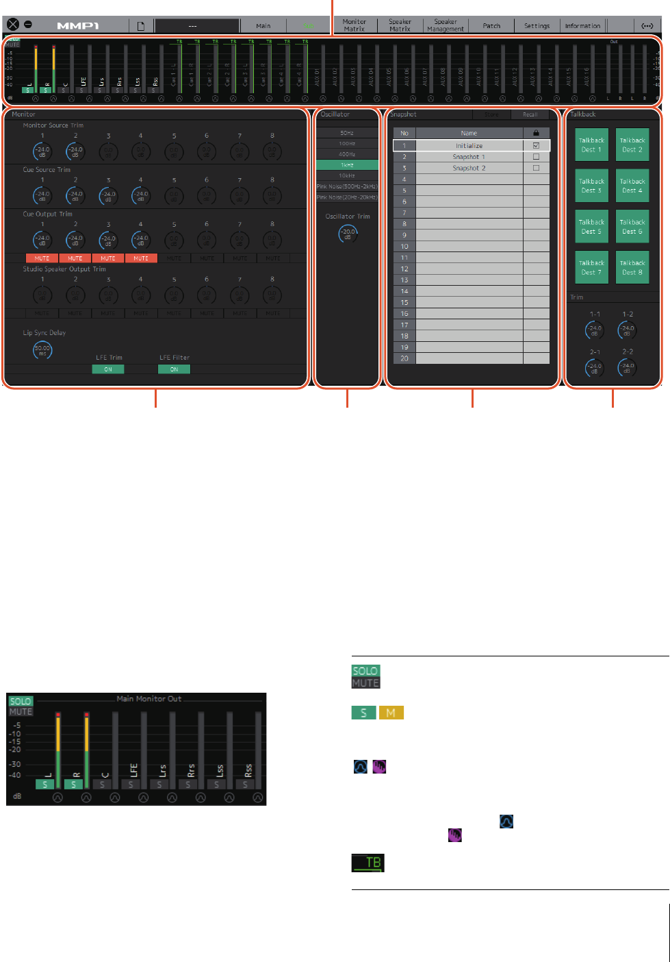 Questa funzione è utilizzata per selezionare una sorgente monitor, missare sorgenti monitor, regolare i livelli e controllare