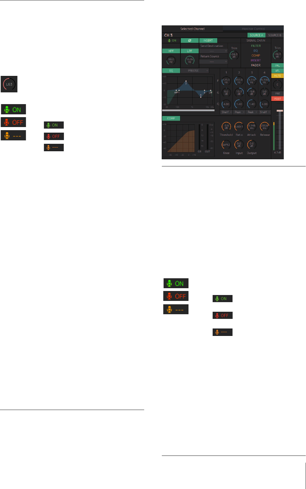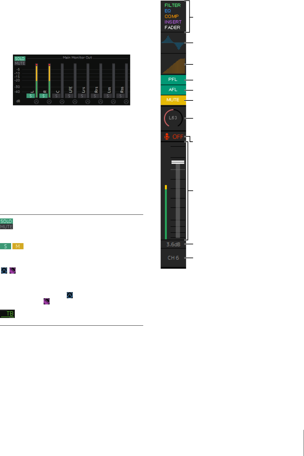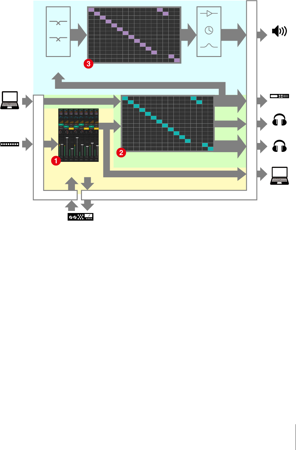 da ottenere un missaggio del segnale a bassa latenza. Il microfono su ciascun channel strip può essere attivato