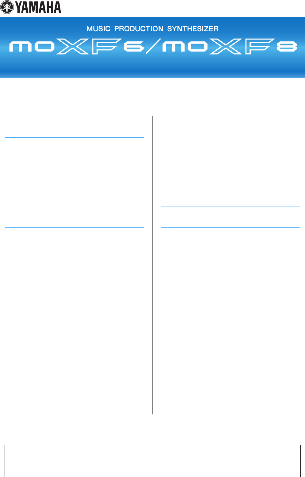 Sono disponibili quattro guide di riferimento per MOXF6/MOXF8: Manuale di istruzioni, Manuale di riferimento (questo documento), Manuale