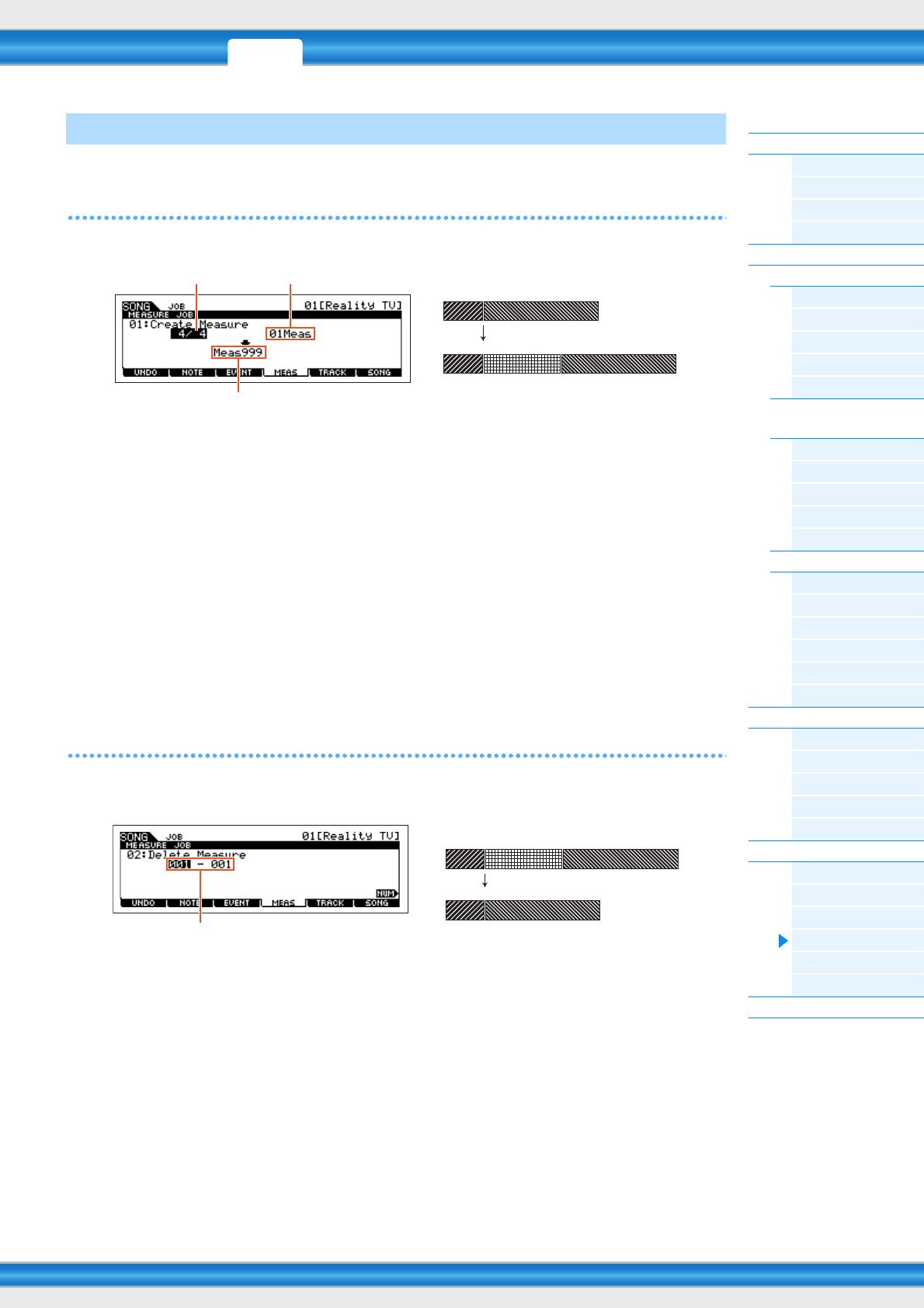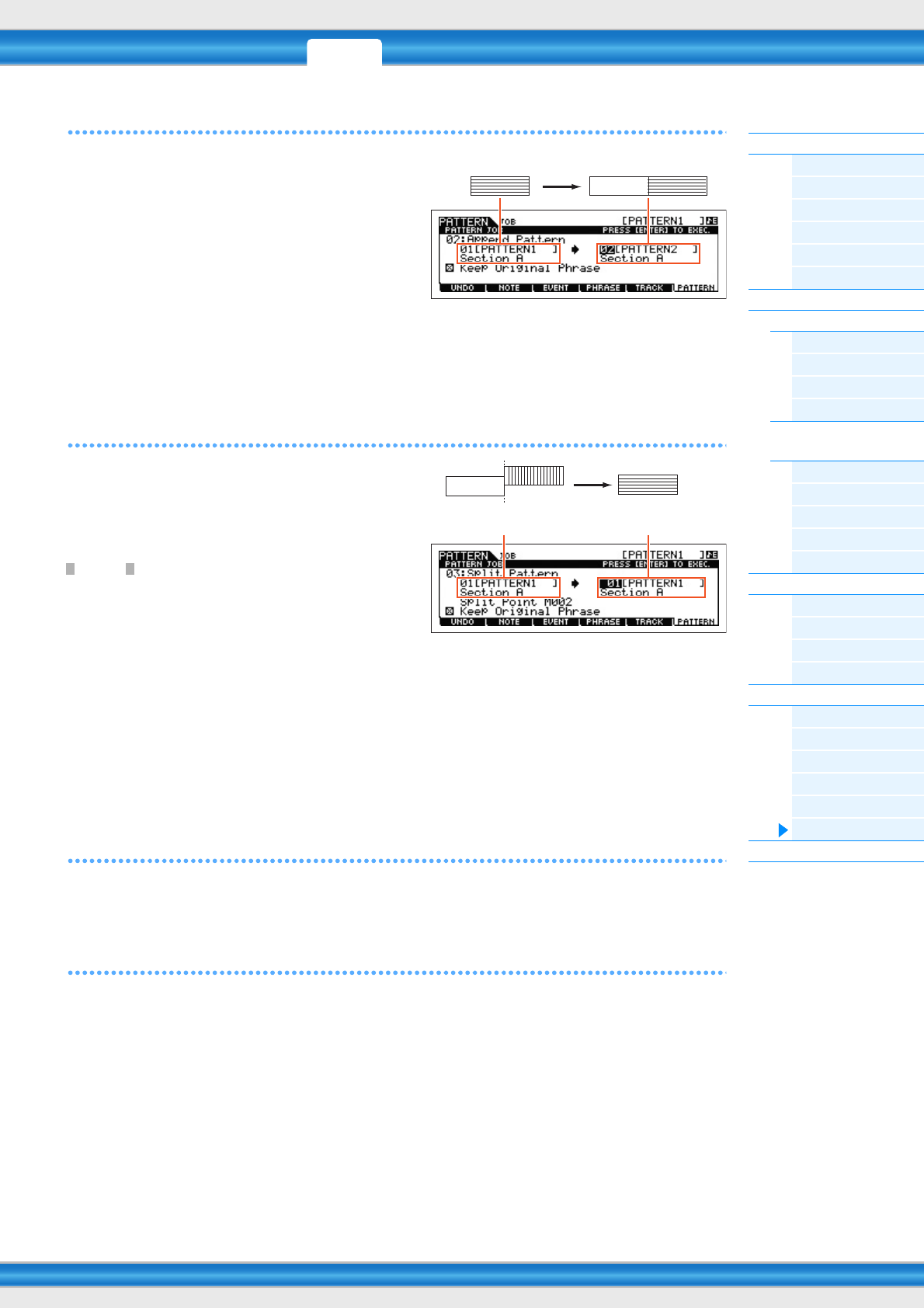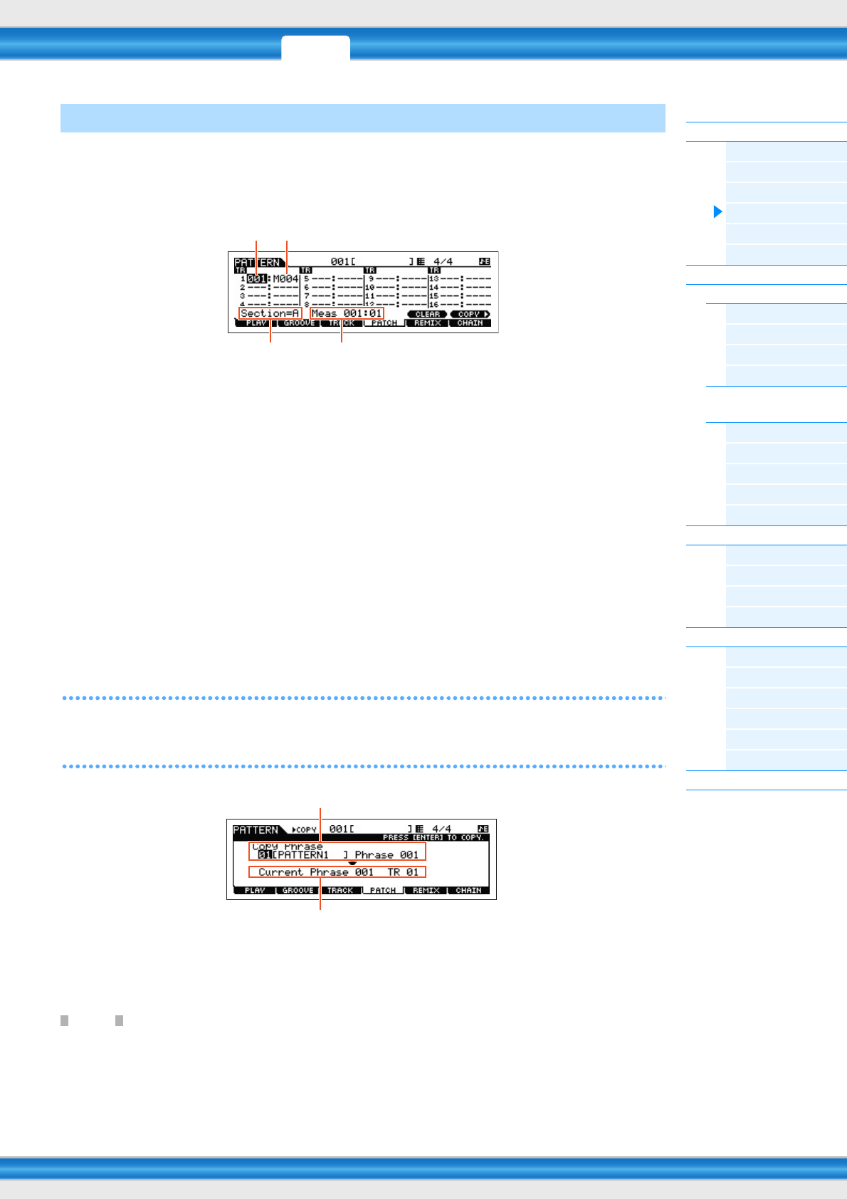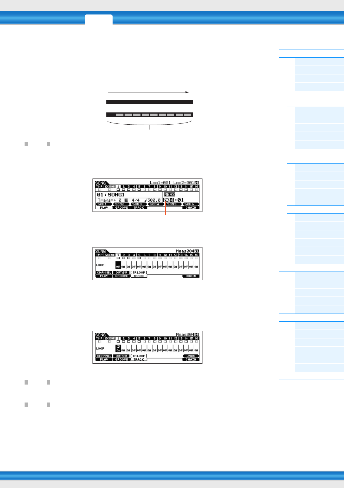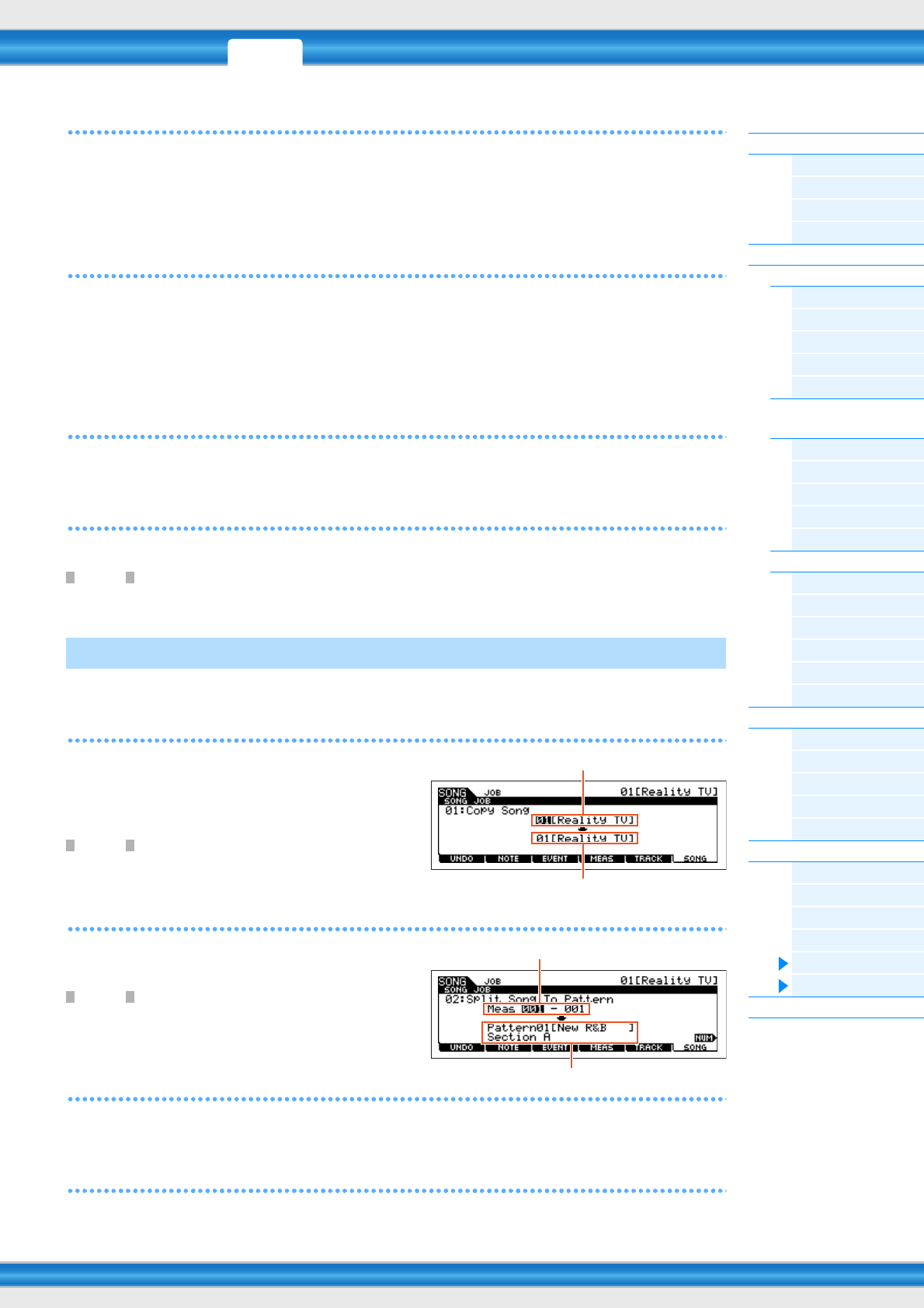della song o del pattern attualmente selezionato. Premere il pulsante [SF2] J (Stop) per arrestare