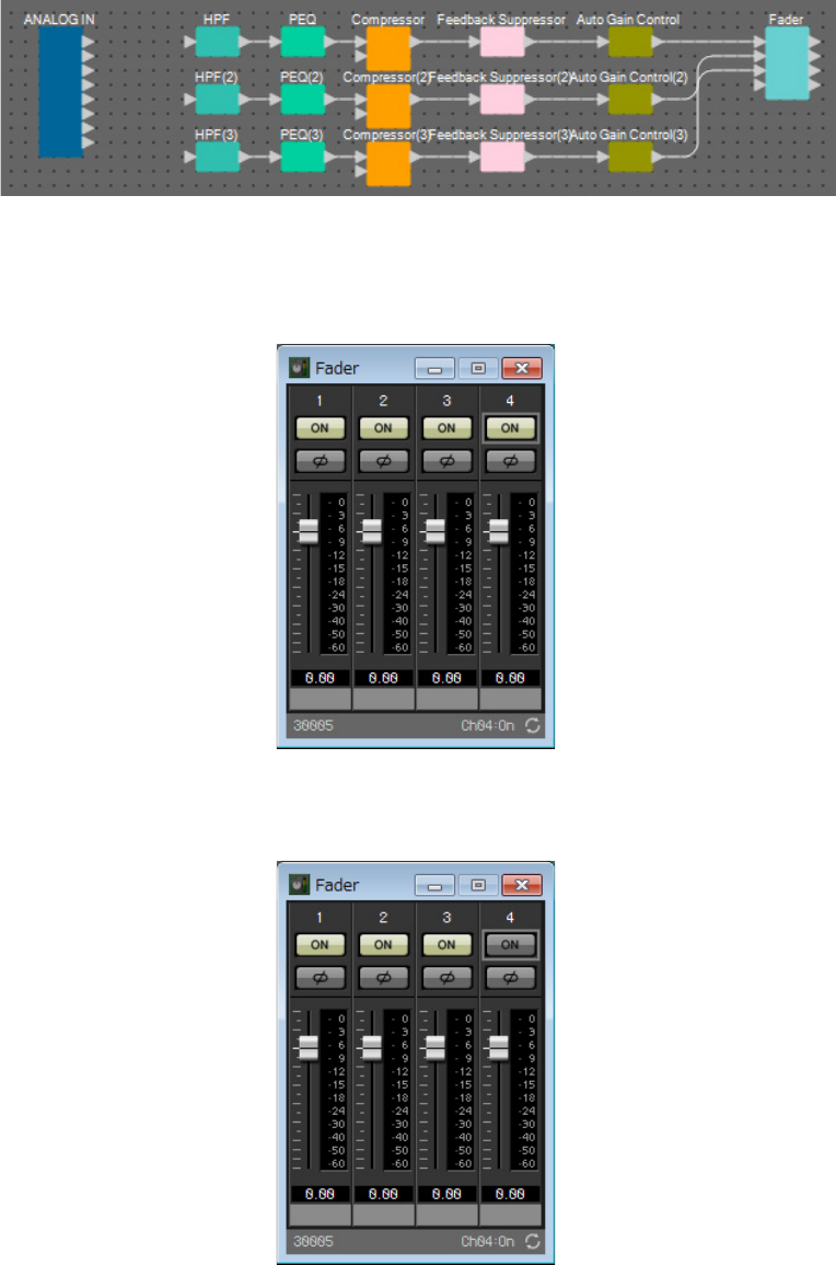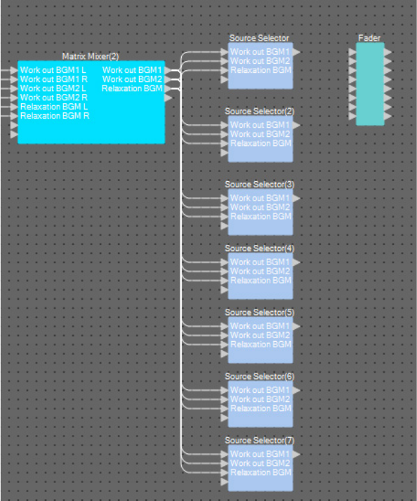若要检查输入电平,您可以使用 “Fader” 组件编辑器和 “Source Mix” 用户定义模块内的 “Fader” 组件编辑