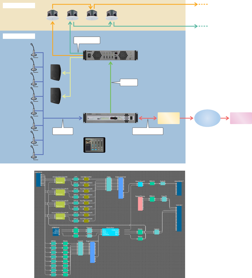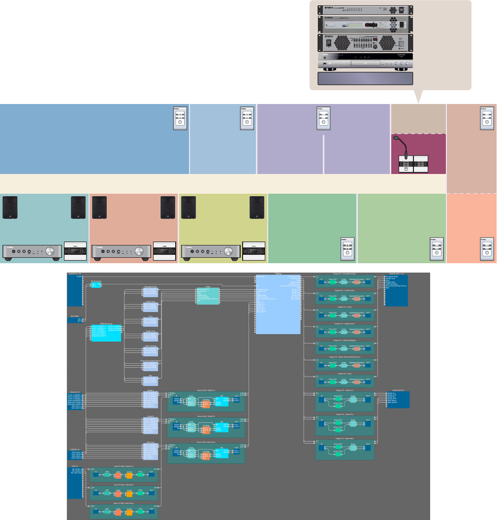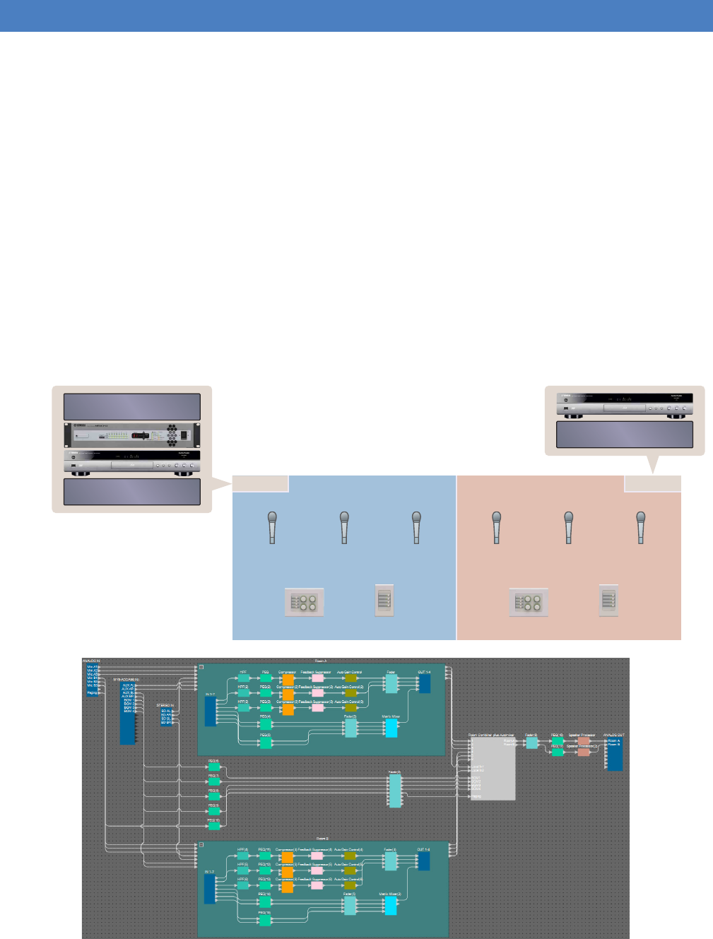 此示例为 Speech Privacy 用于防止讨论内容泄露到远程会议系统房间和其他外部房间之外。假设有一个远