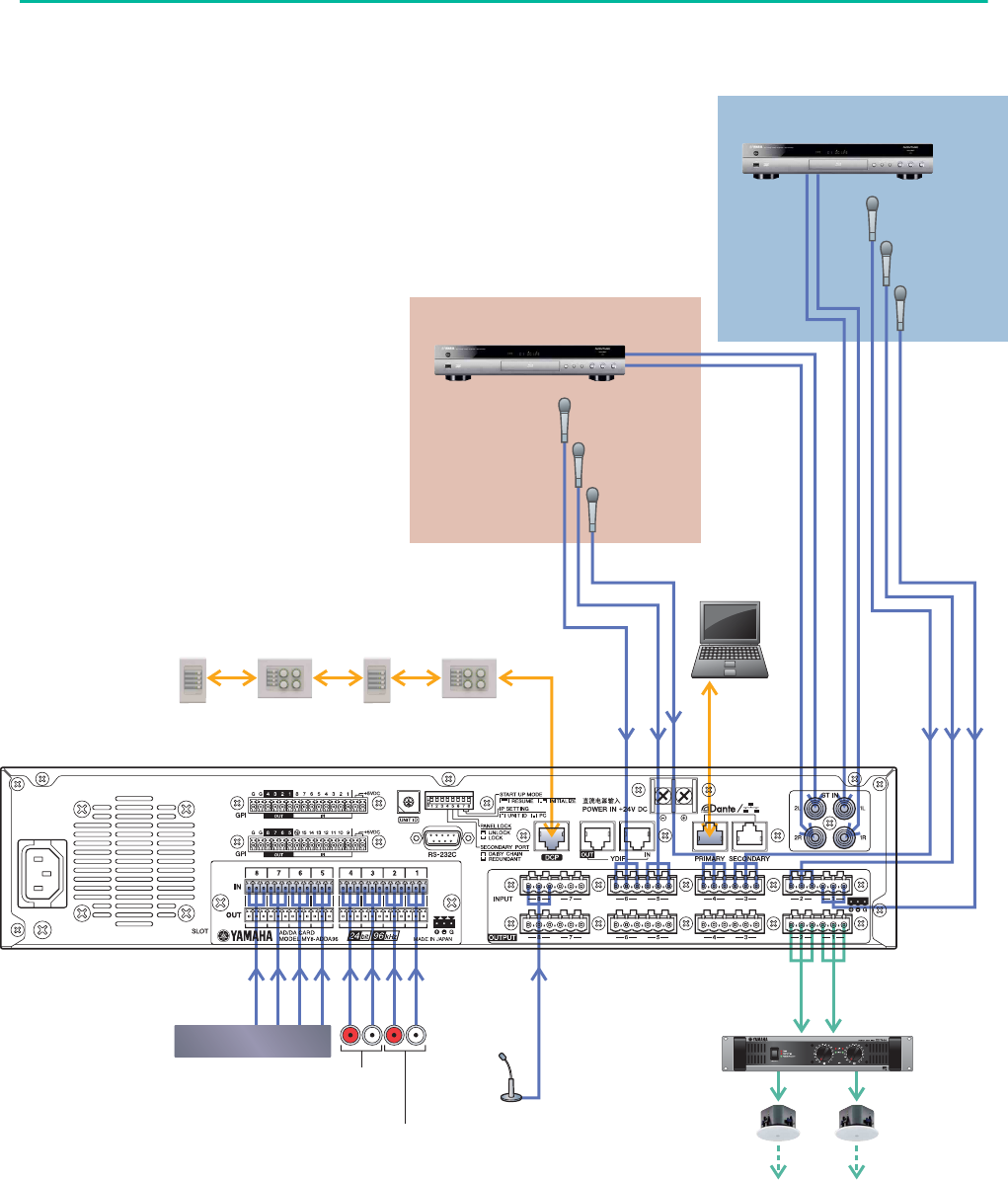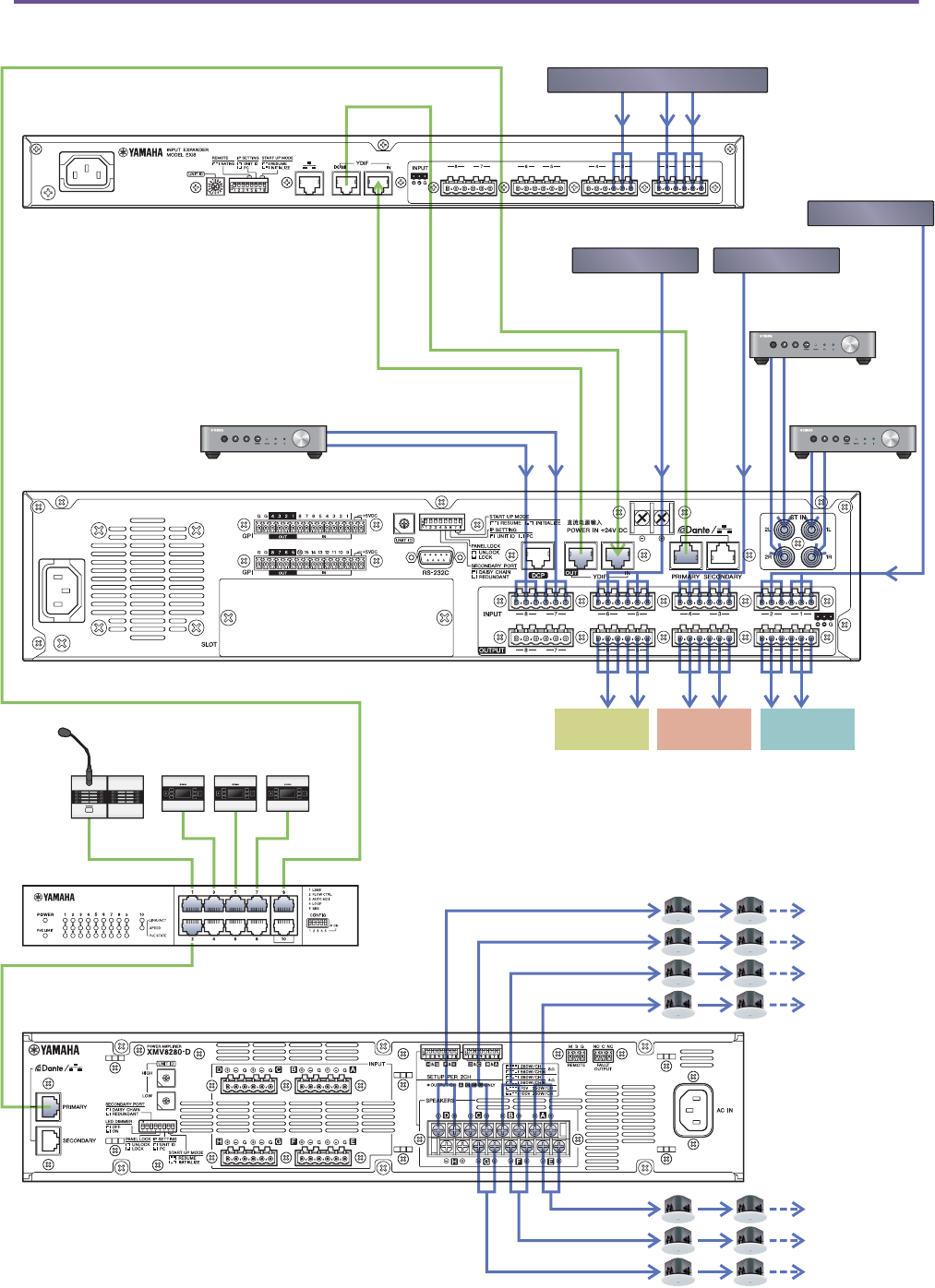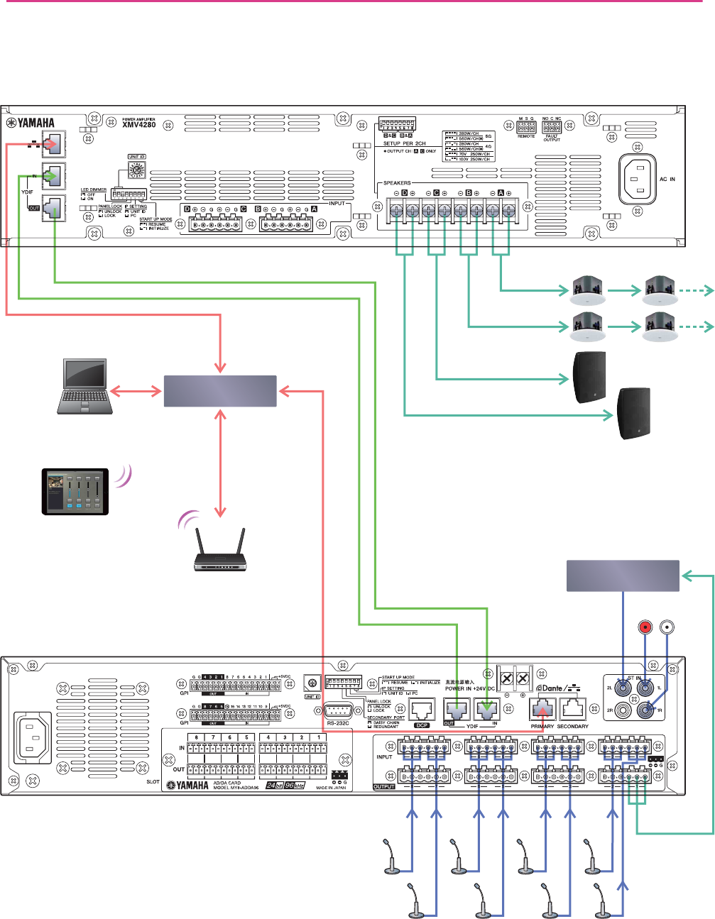 机架安装 MRX 和其他设备之后,如下所示连接 MRX 和其他设备。此时请将 SD 存储卡插入 MRX。