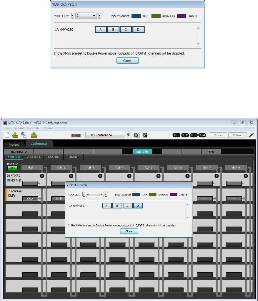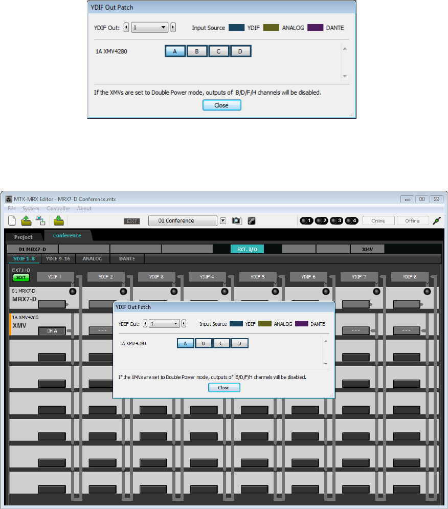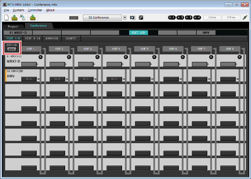 4. 单击 “YDIF 1” 的EXi8 输入路由选择按钮。
