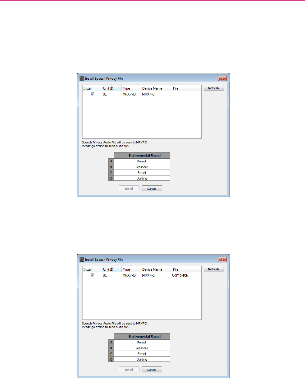 A: 环境声音可能尚未发送到 MRX。按 照 示 例 2(“发送 Speech Privacy 环境音 ”)中的步骤将声音发送到 MRX。