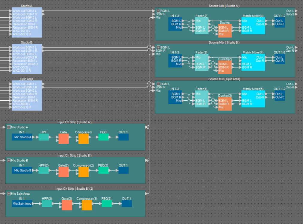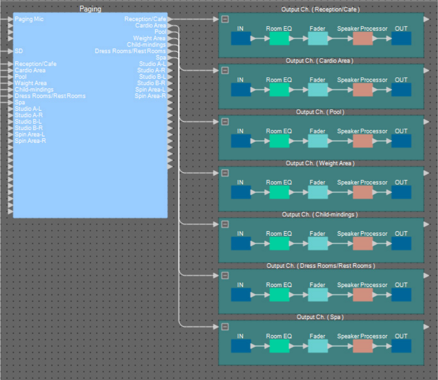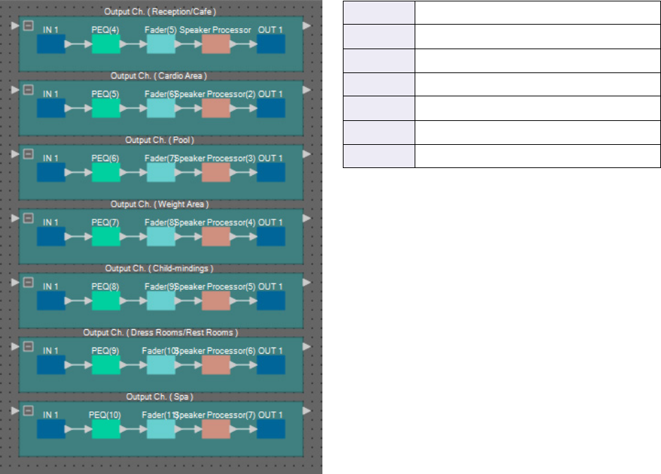 1. 在“Output Ch.” 用户定义模块中,将 “Speaker Processor” 设置为适合扬声器的值。