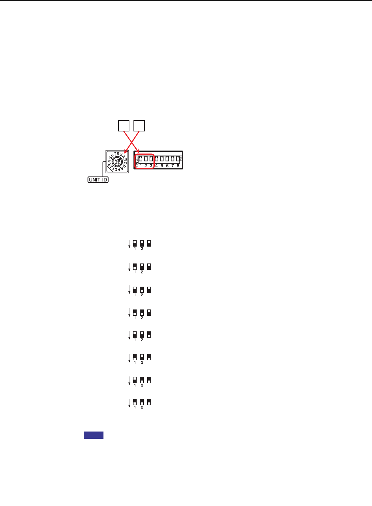 UNIT ID. Use the device’s DIP switch to set IP SETTING to PC.