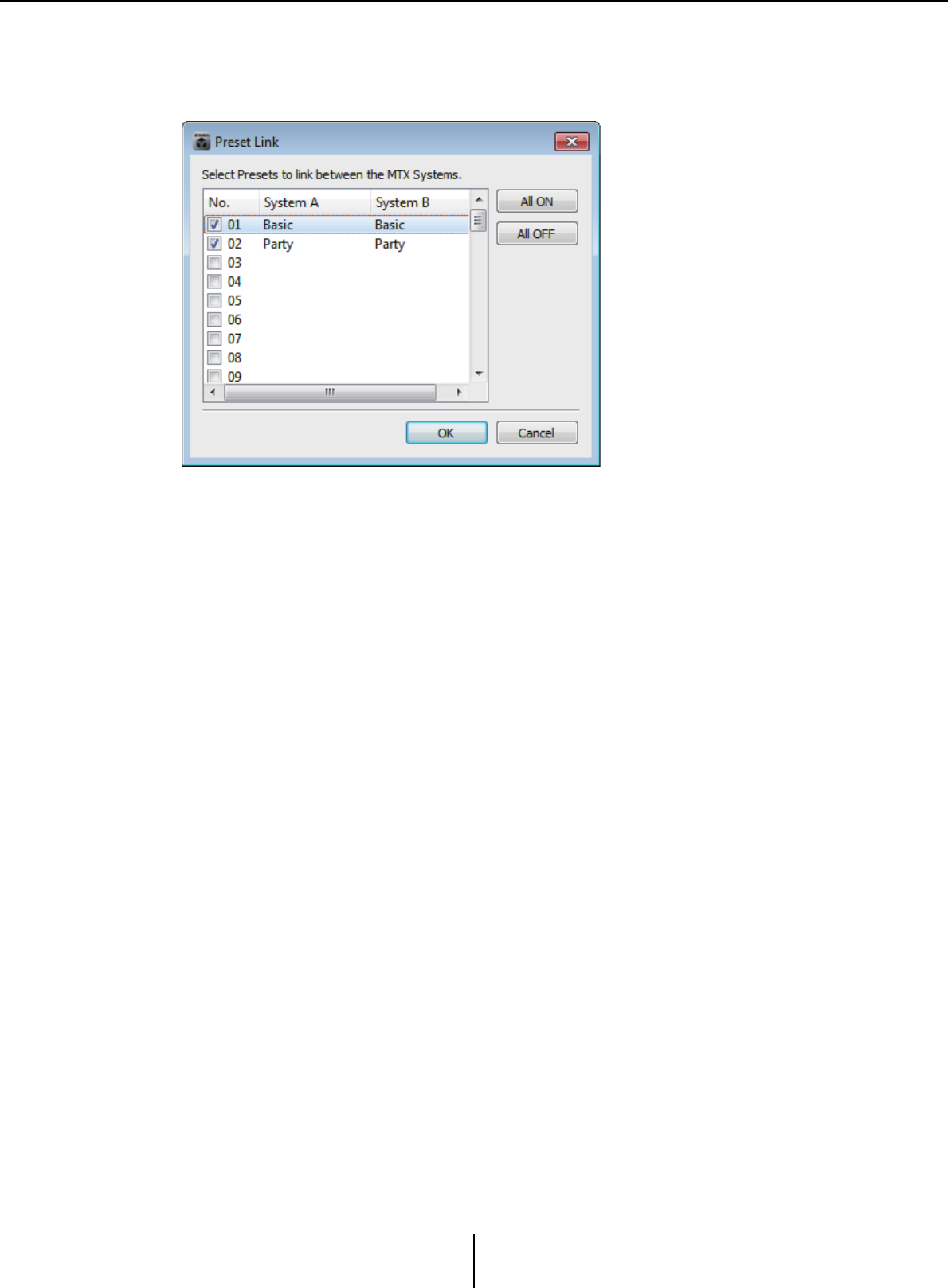 - “MTX Configuration” dialog box