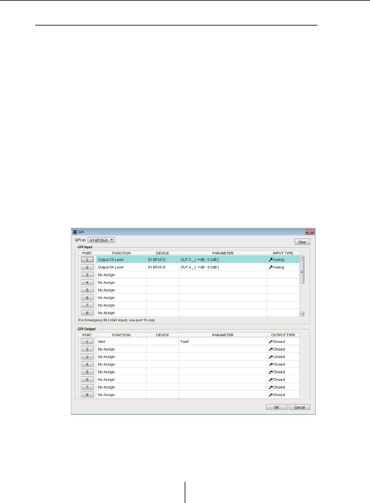 YDIF, make sure that the “EXT. I/O” settings match the port