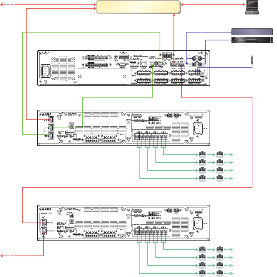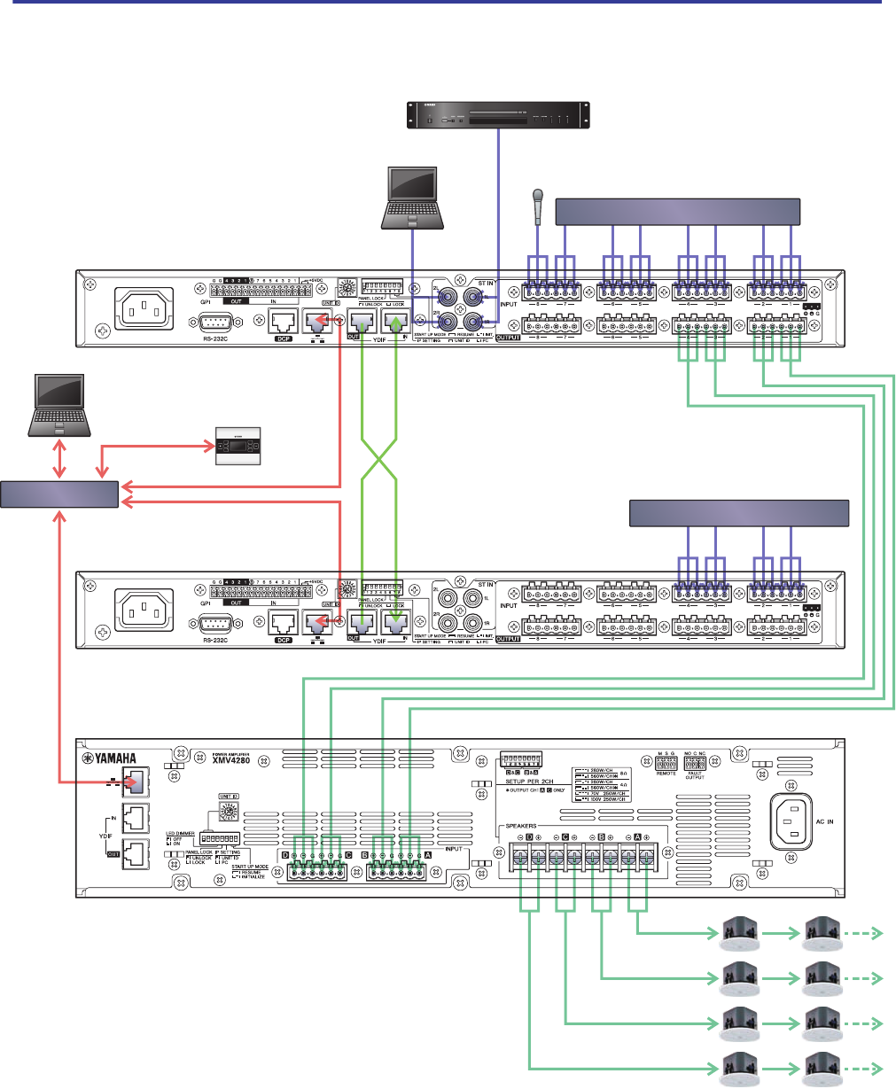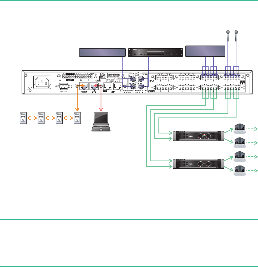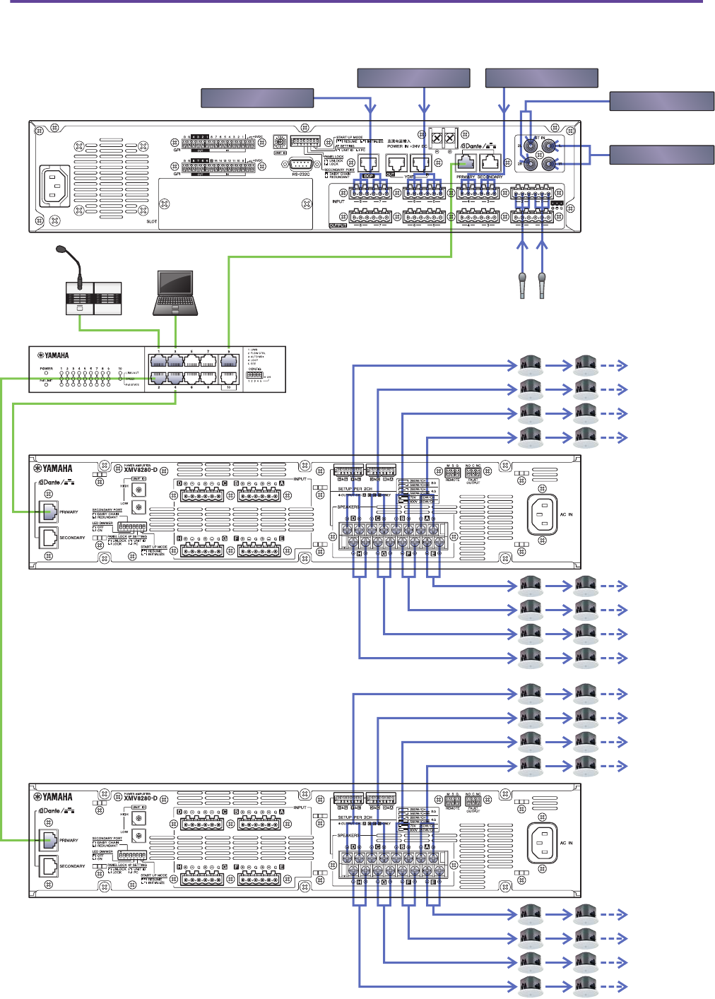 Dopo avere montato in rack l'unità MTX e le altre apparecchiature, collegarle come mostrato di seguito. Se le sorgenti