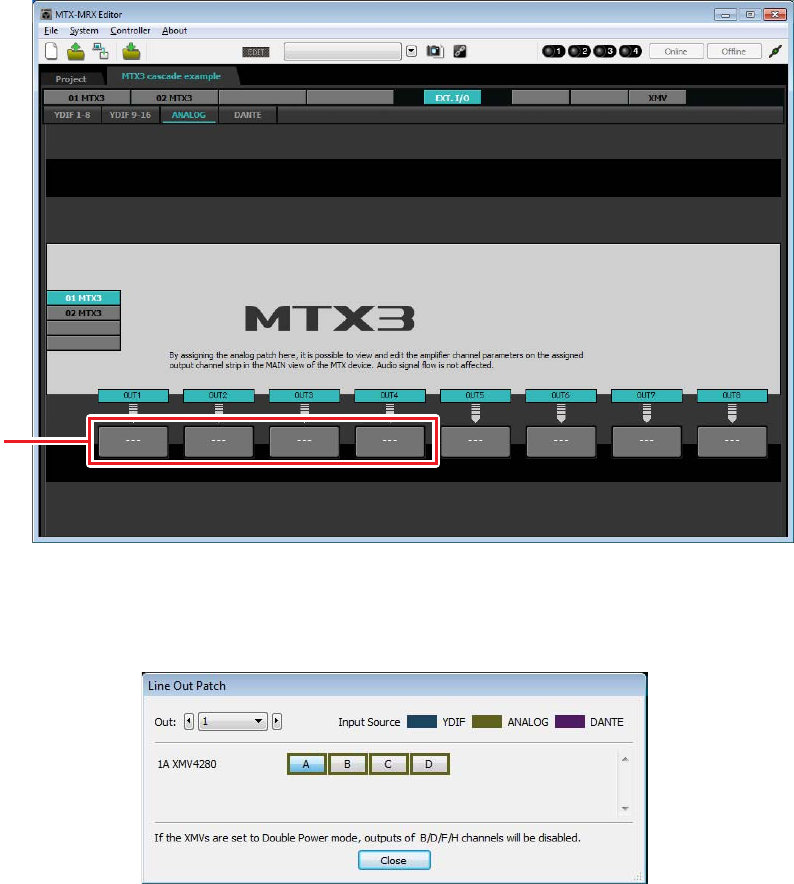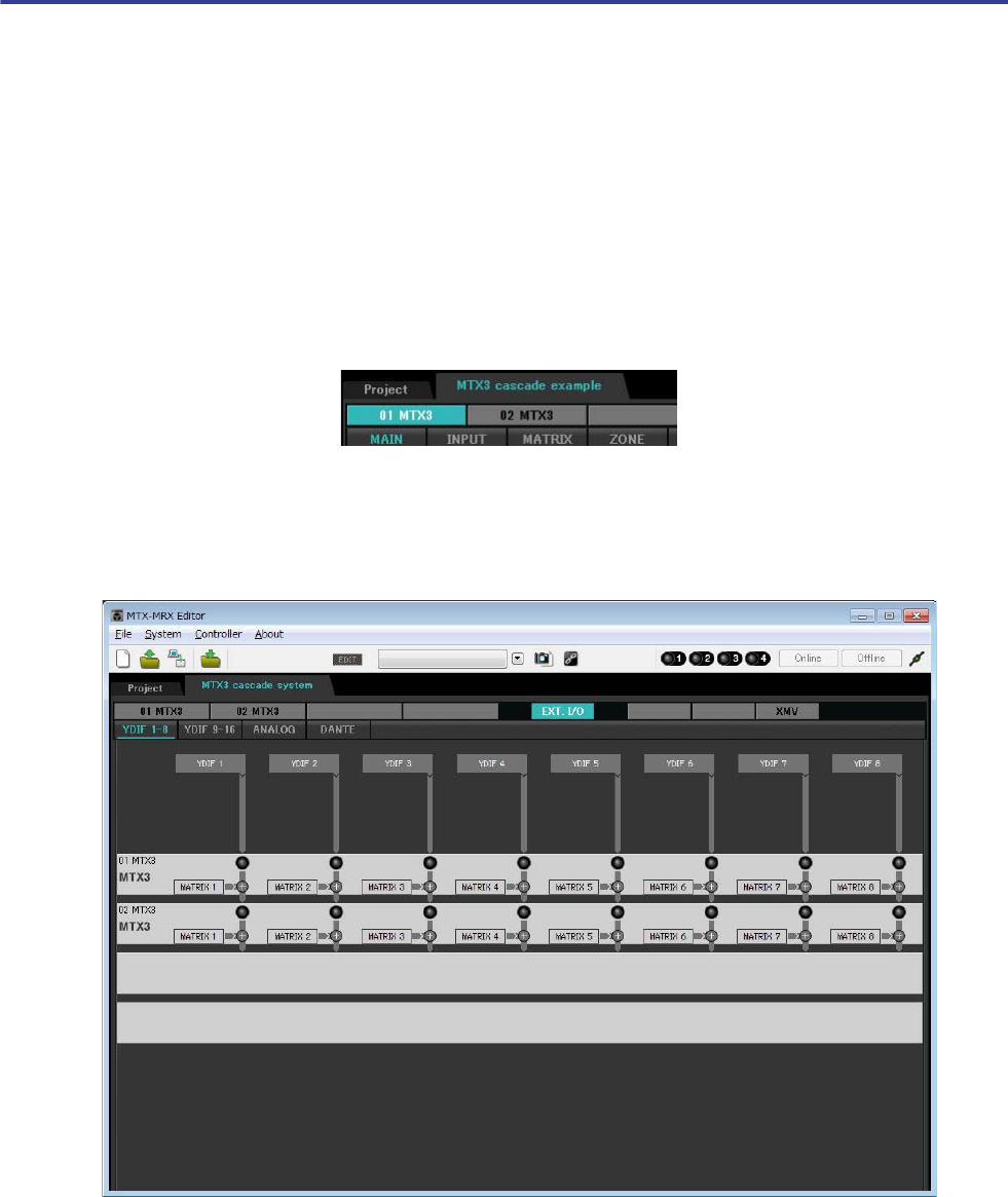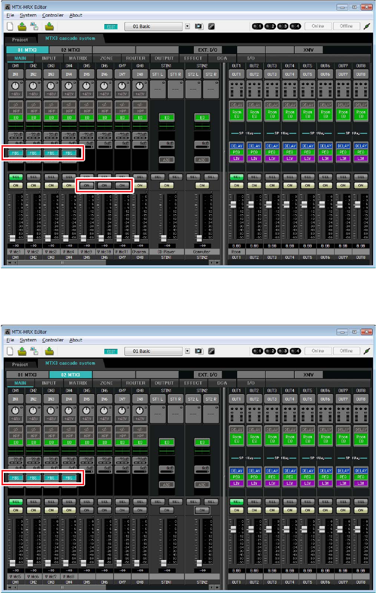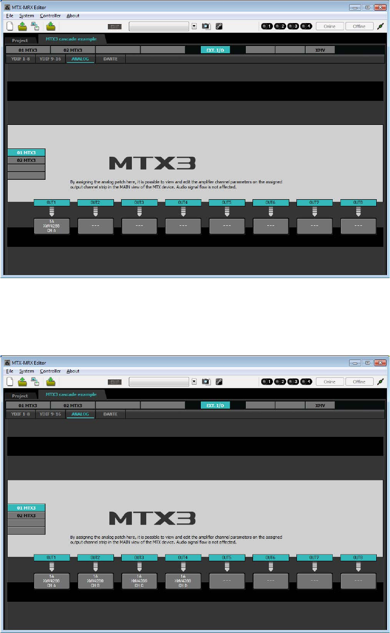 - Esempio 3) Uso della modalità a cascata per aggiungere i canali di ingresso MTX (connessione analogica)
