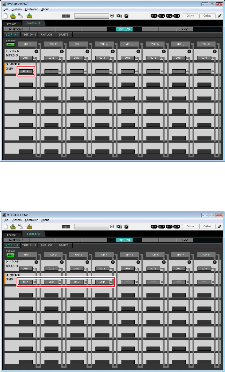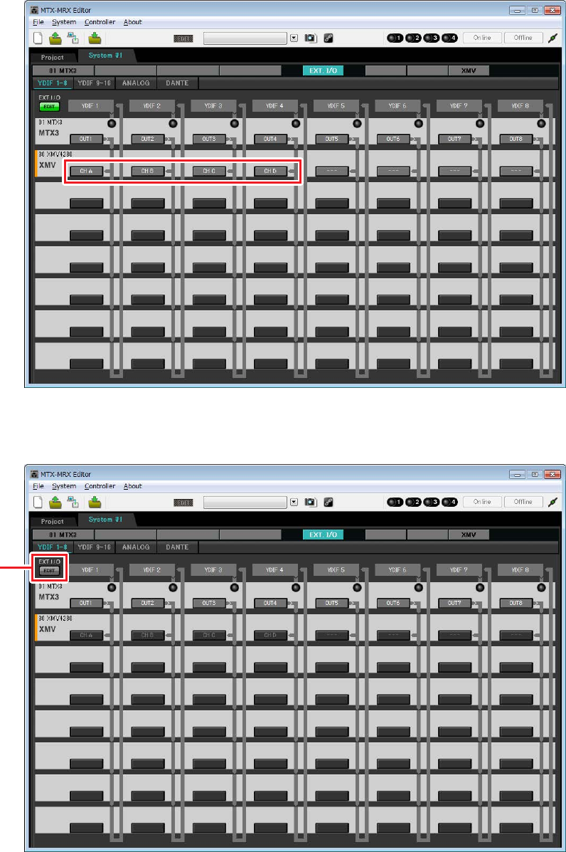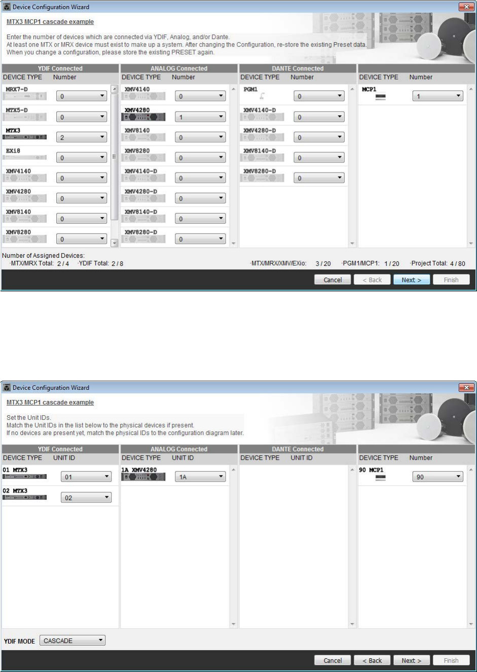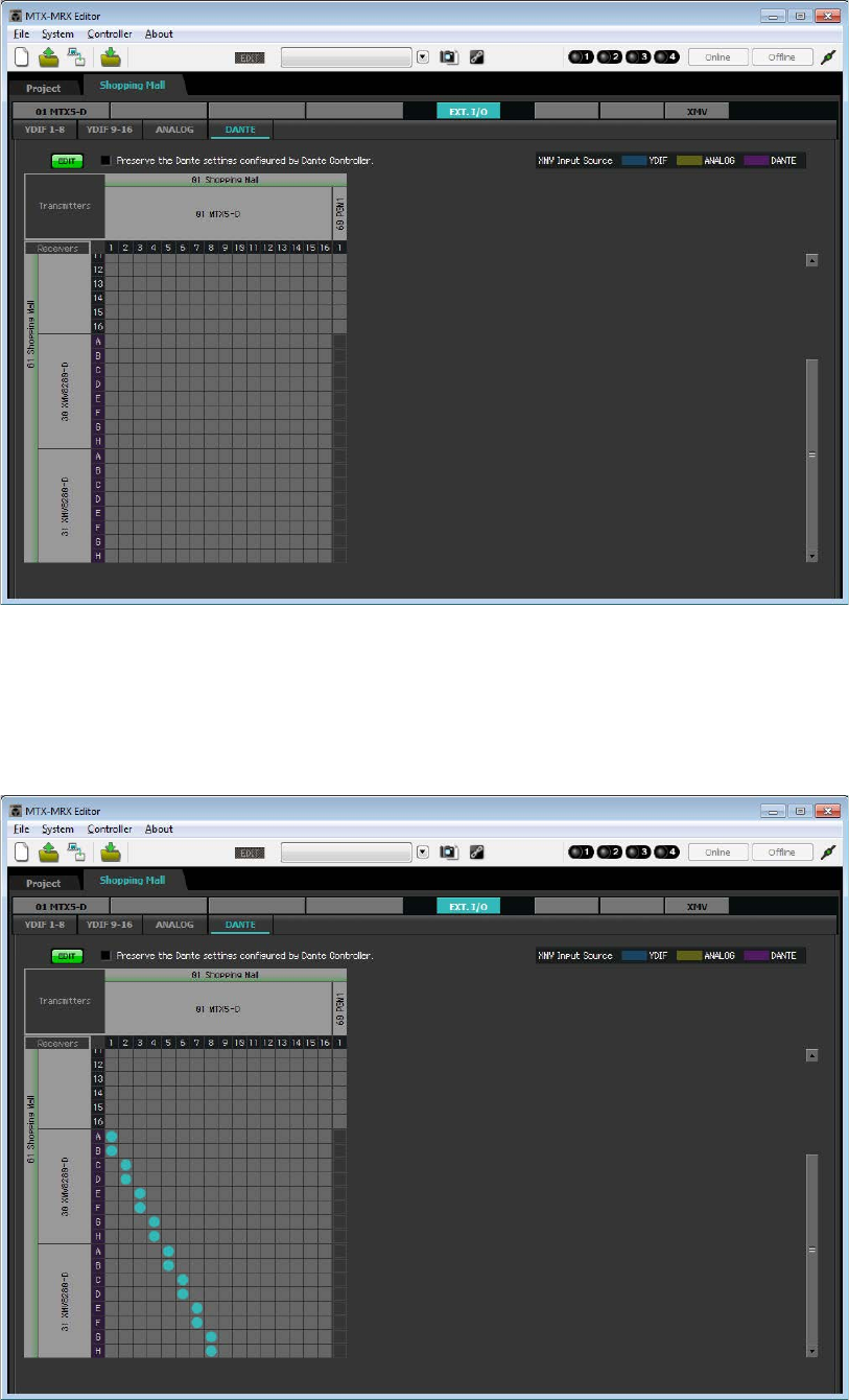 - Esempio 3) Uso della modalità a cascata per aggiungere i canali di ingresso MTX (connessione analogica)