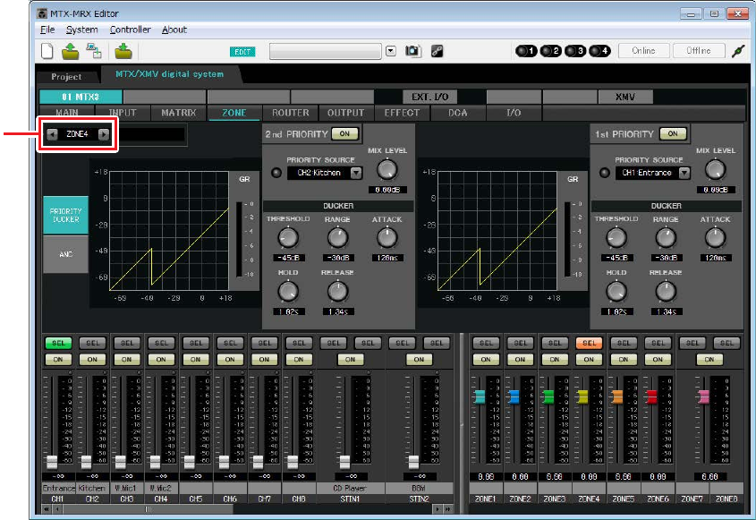 Utilizzando i fader di ingresso/uscita nella schermata "MAIN", specificare i livelli. Se necessario, applicare il