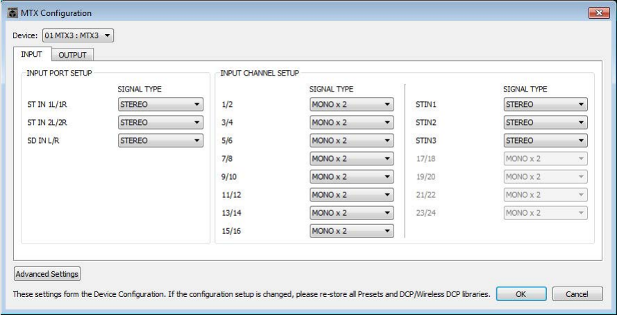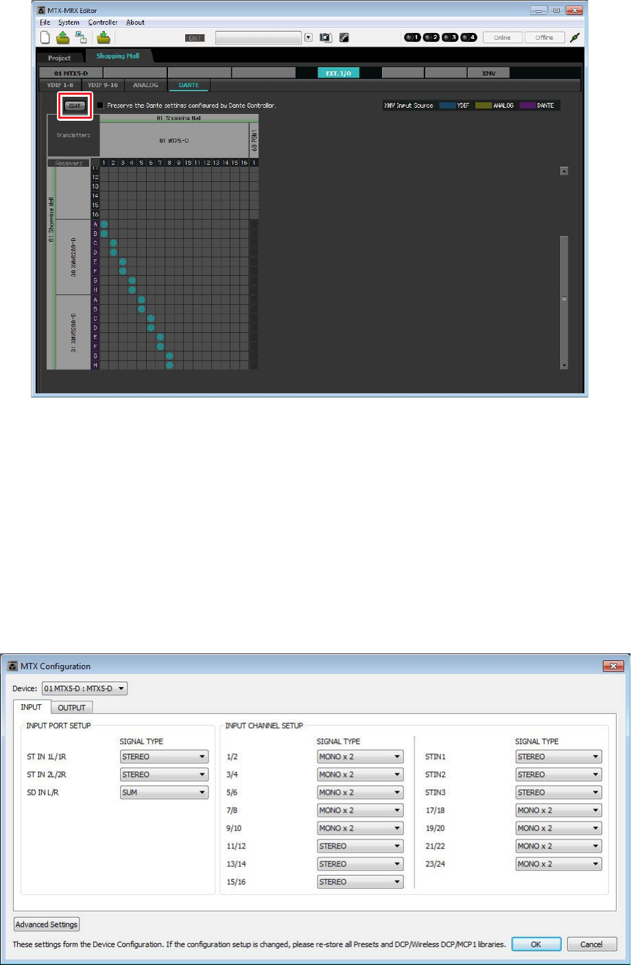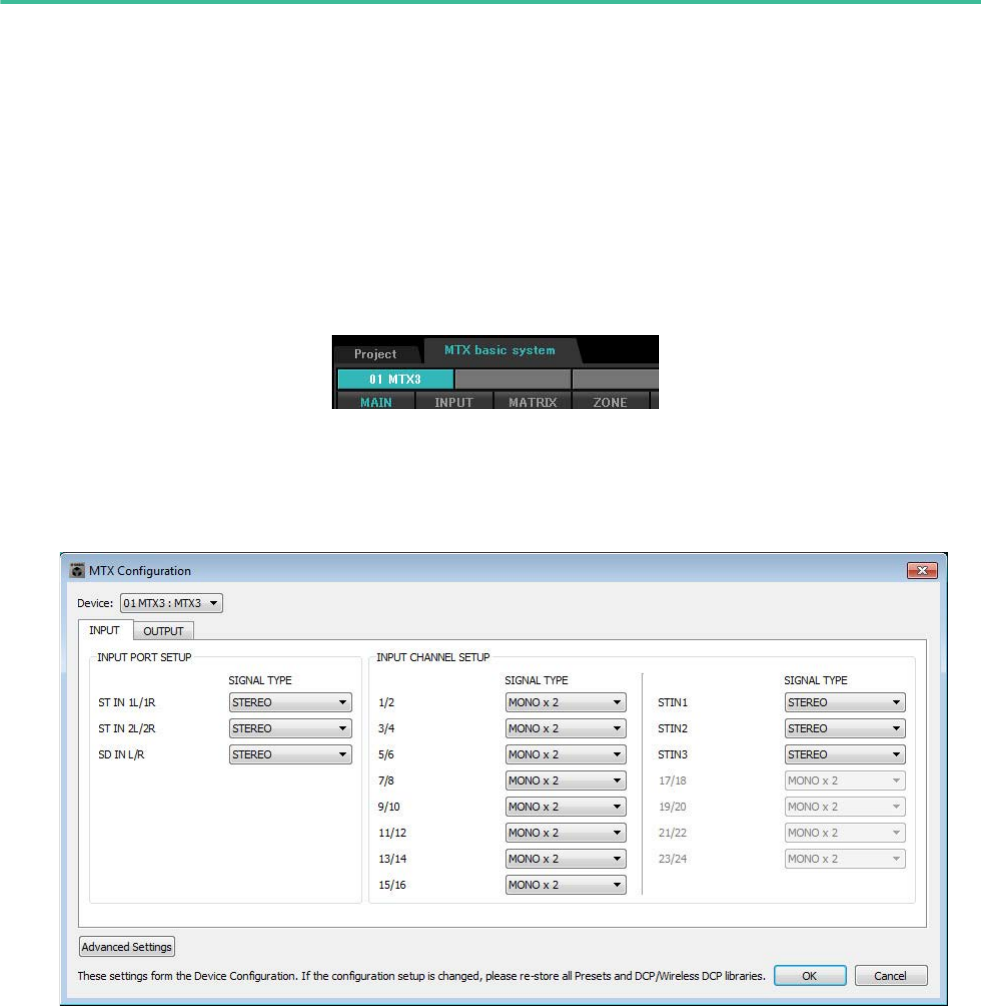 - Realizzazione delle impostazioni preliminari in MTX-MRX Editor