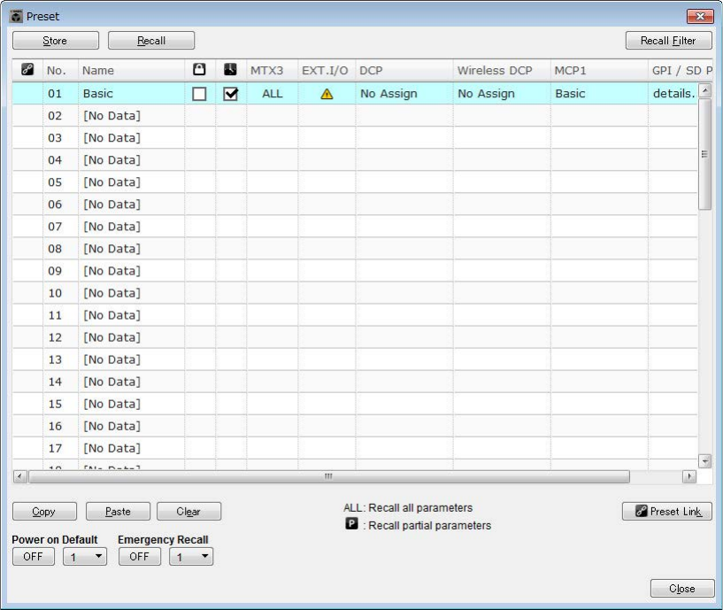 parametro, fare riferimento al "Manuale utente di MTX-MRX Editor".