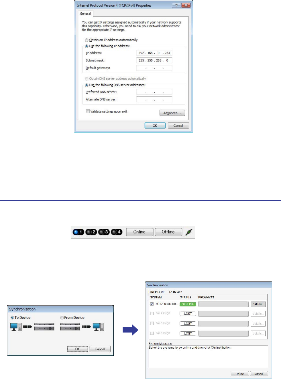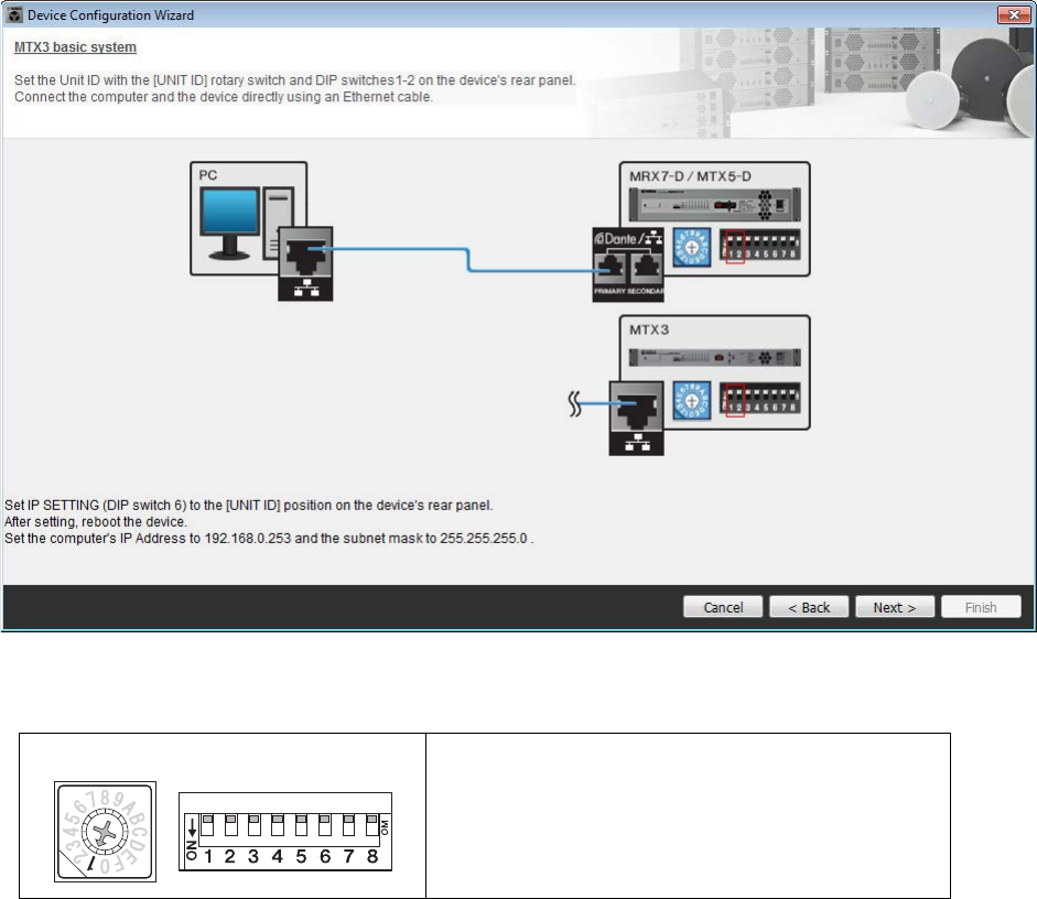 Per consentire la comunicazione tra l'unità MTX e il computer, specificare il TCP/IP del computer come descritto di seguito.