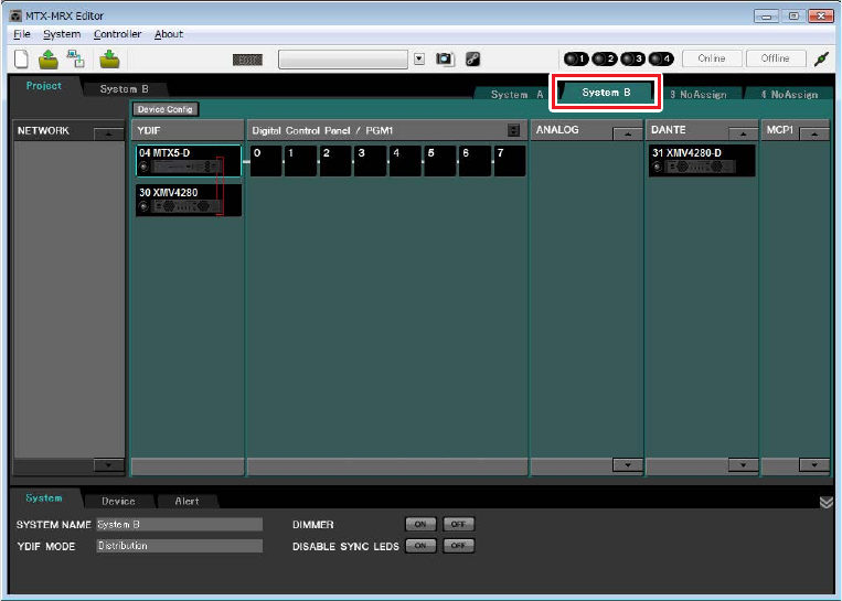 1. Nel menu [System] (Sistema) di MTX-MRX Editor fare clic su [Network Setup]