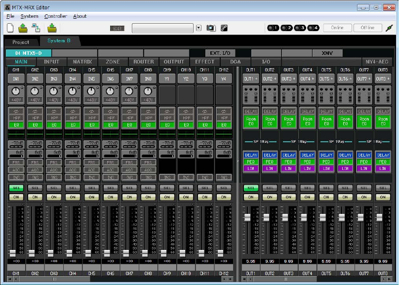 DSP serie MTX usati assieme al software di controllo MTX-MRX Editor.