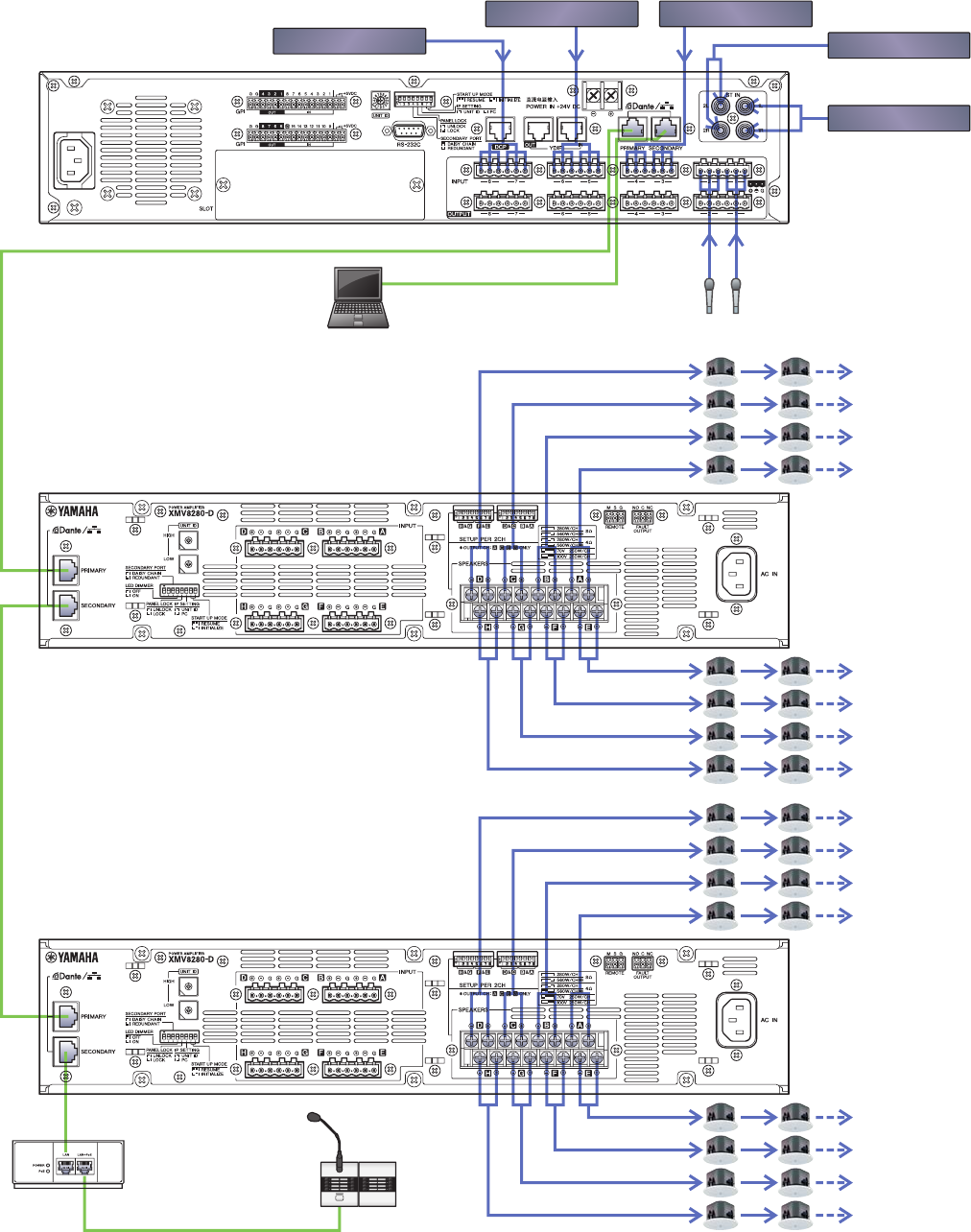- Esempio 2) Sistema ad alta qualità audio con connessioni XMV e YDIF (connessioni digitali)