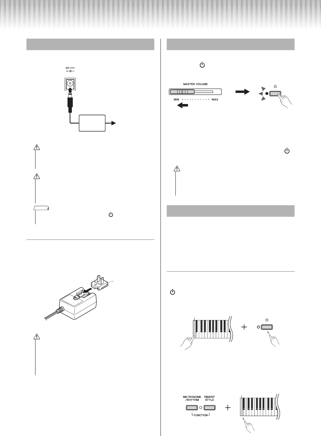 • This AC adaptor is designed for use with only Yamaha electronic instruments. Do