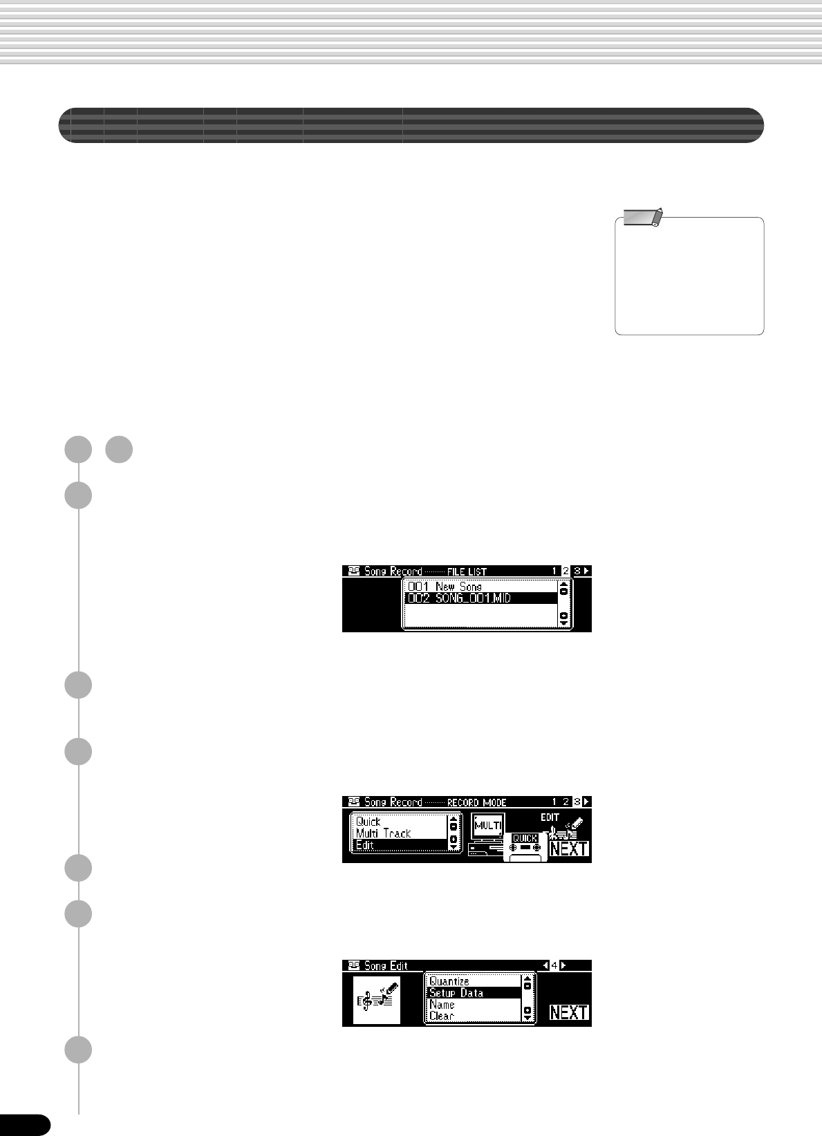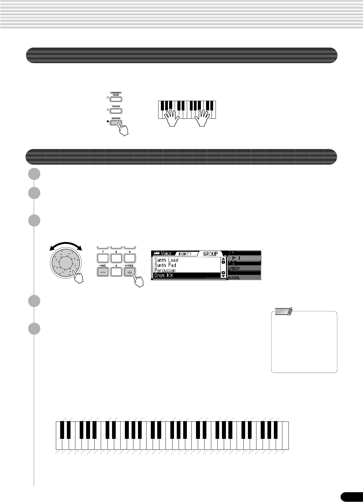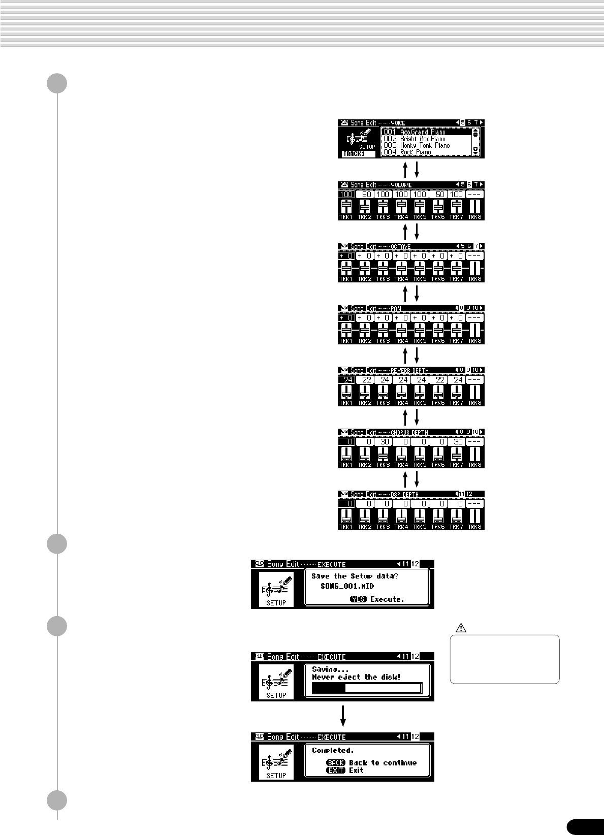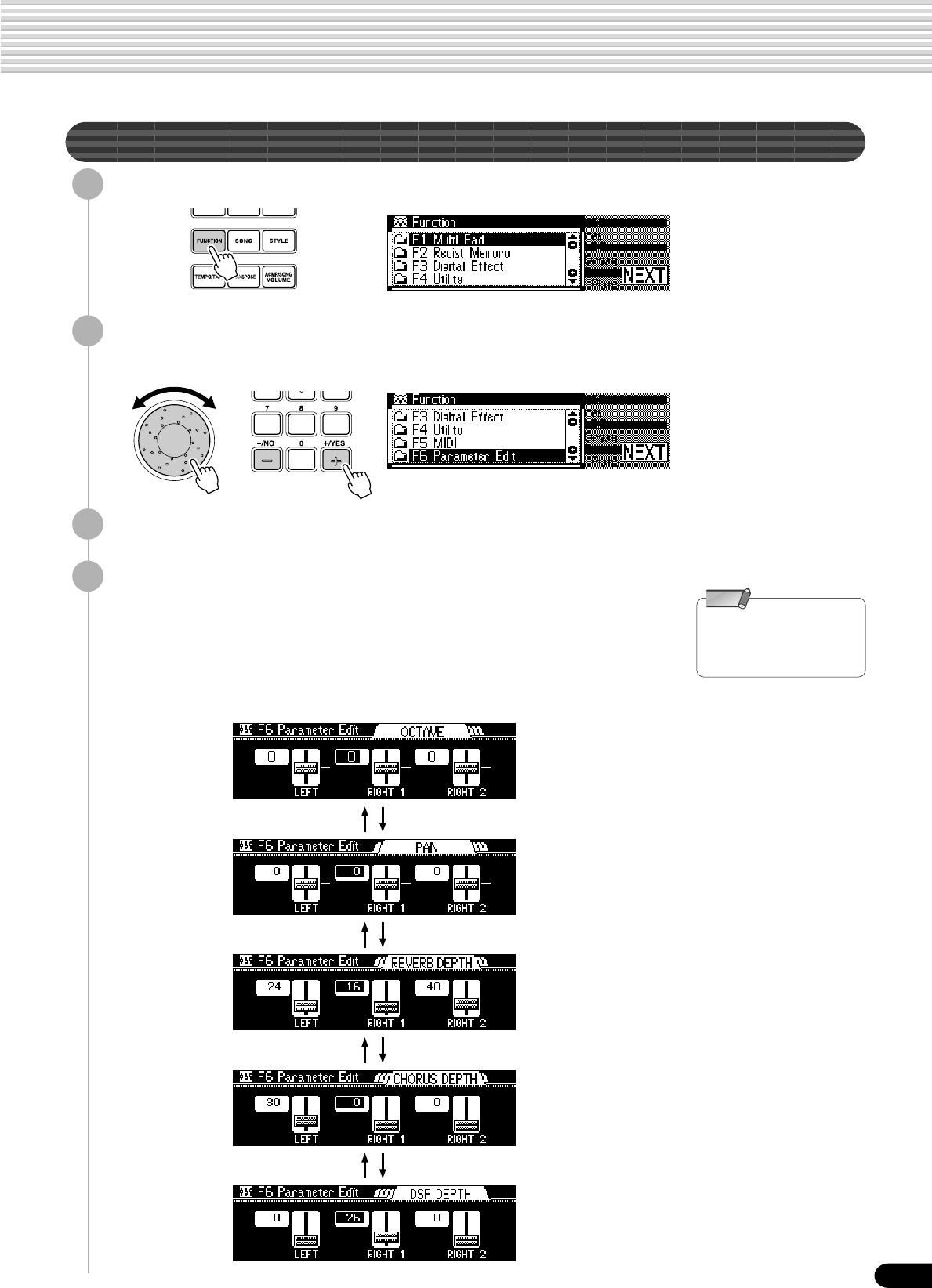 • Setup Data : Volume, Octave, Pan,