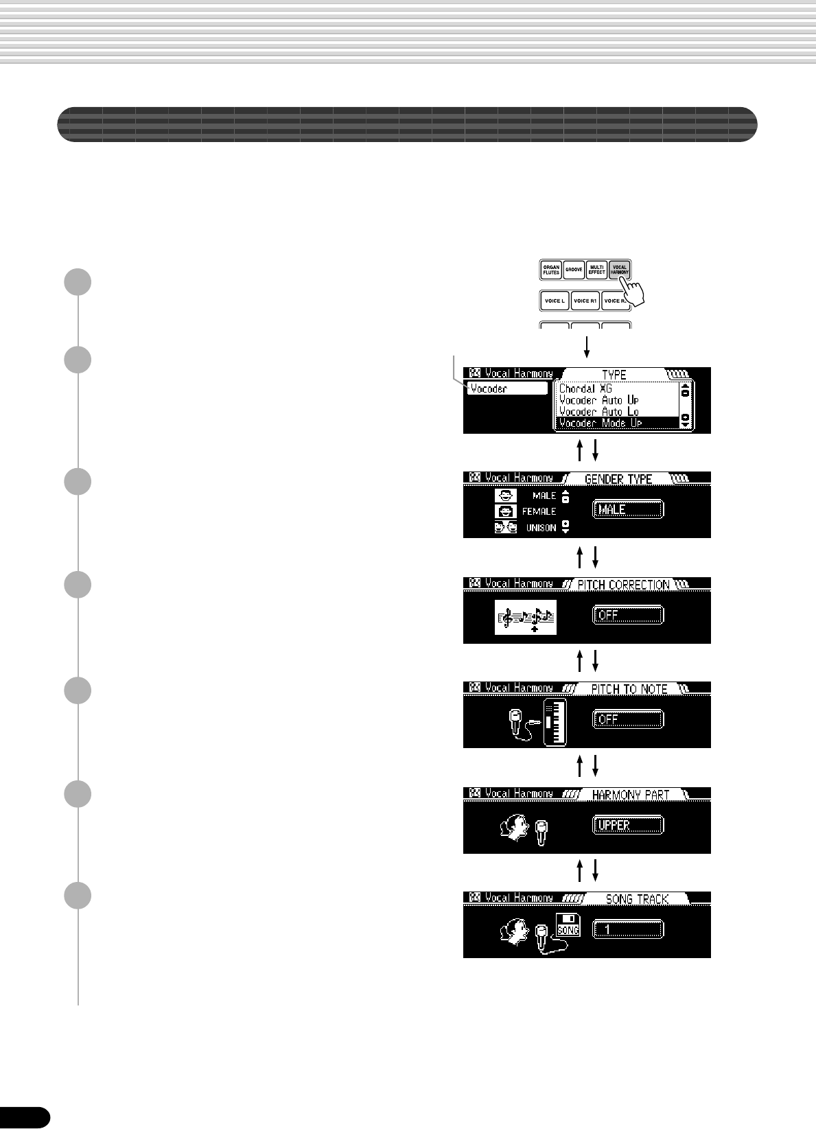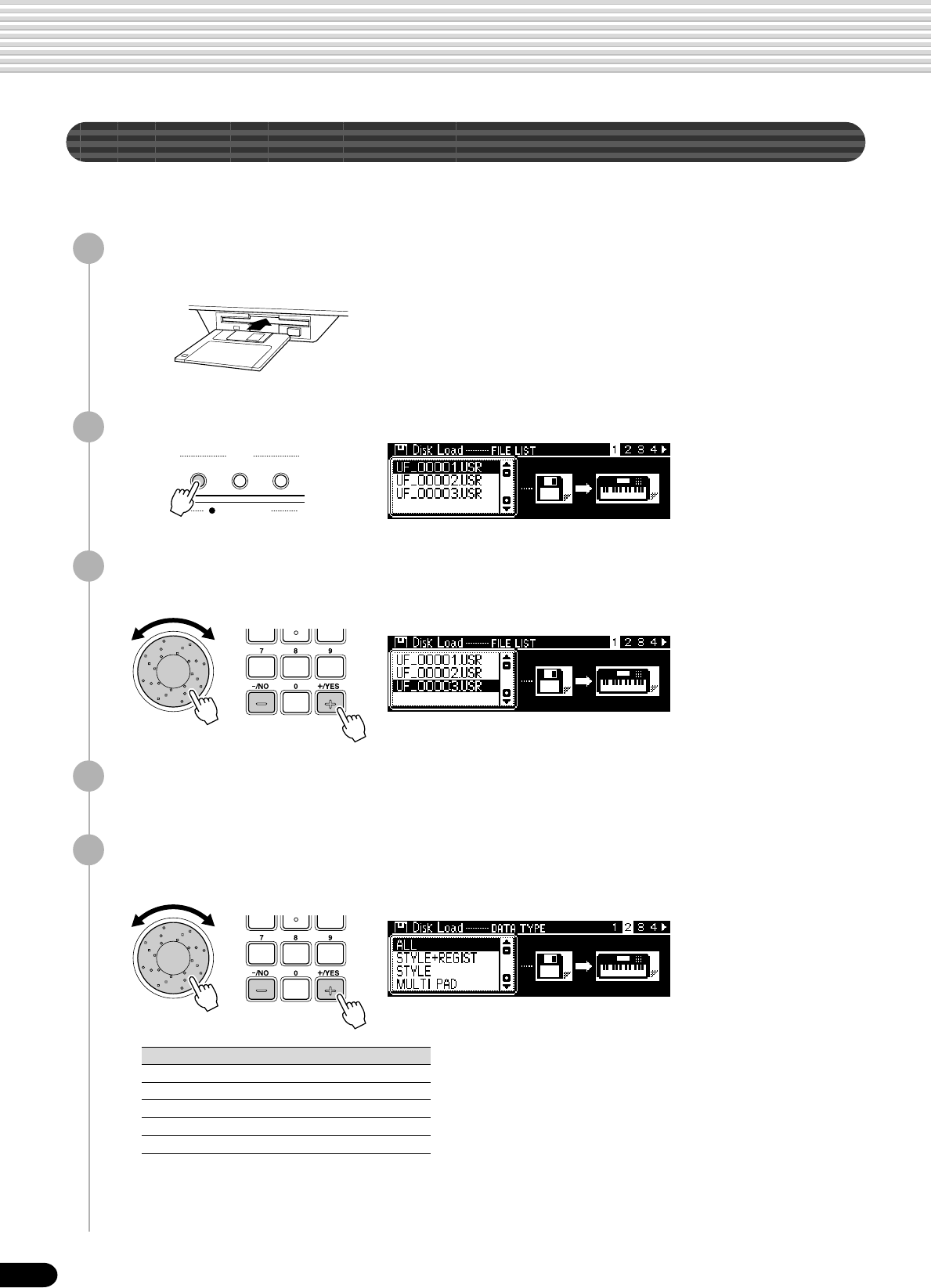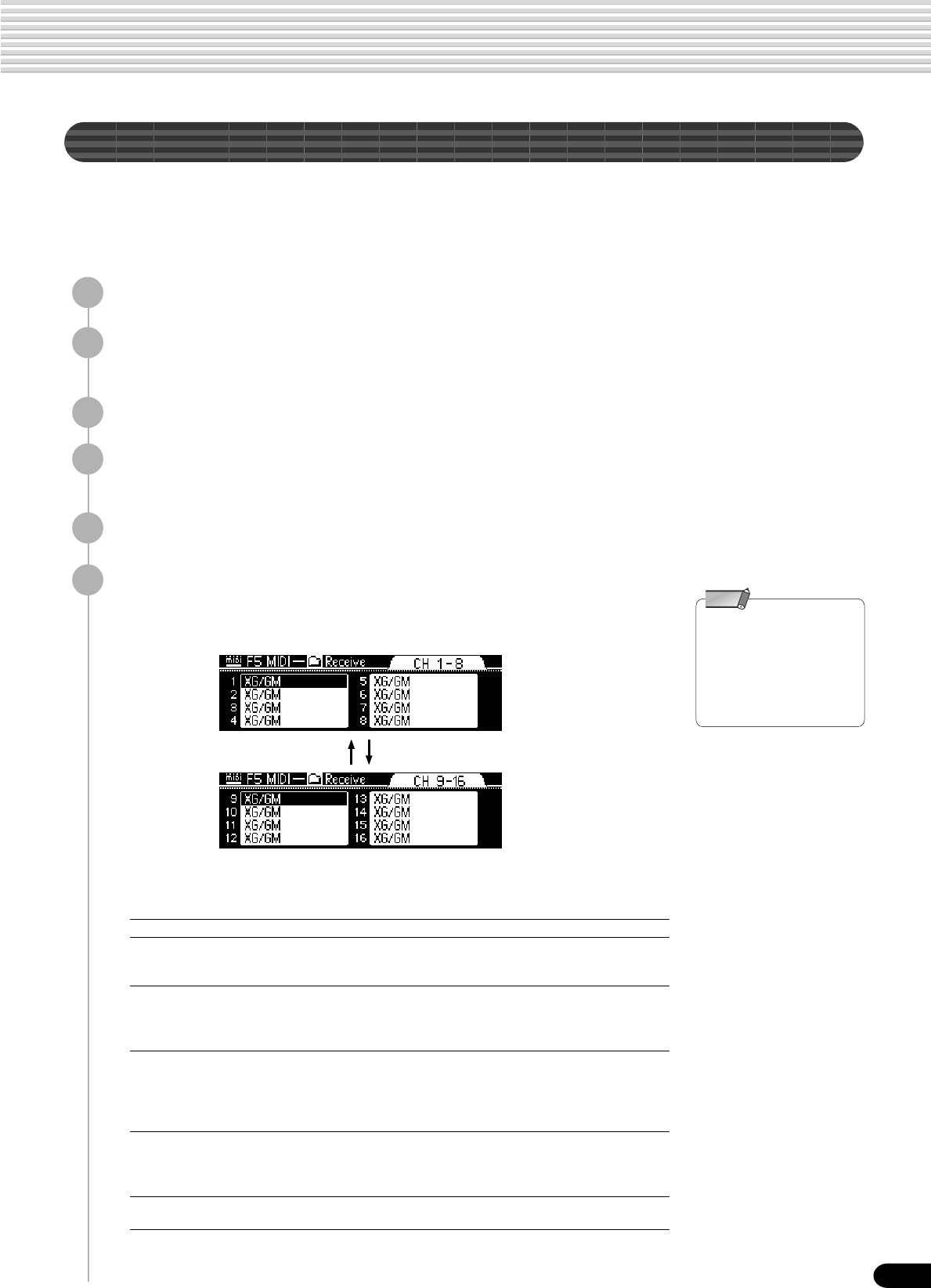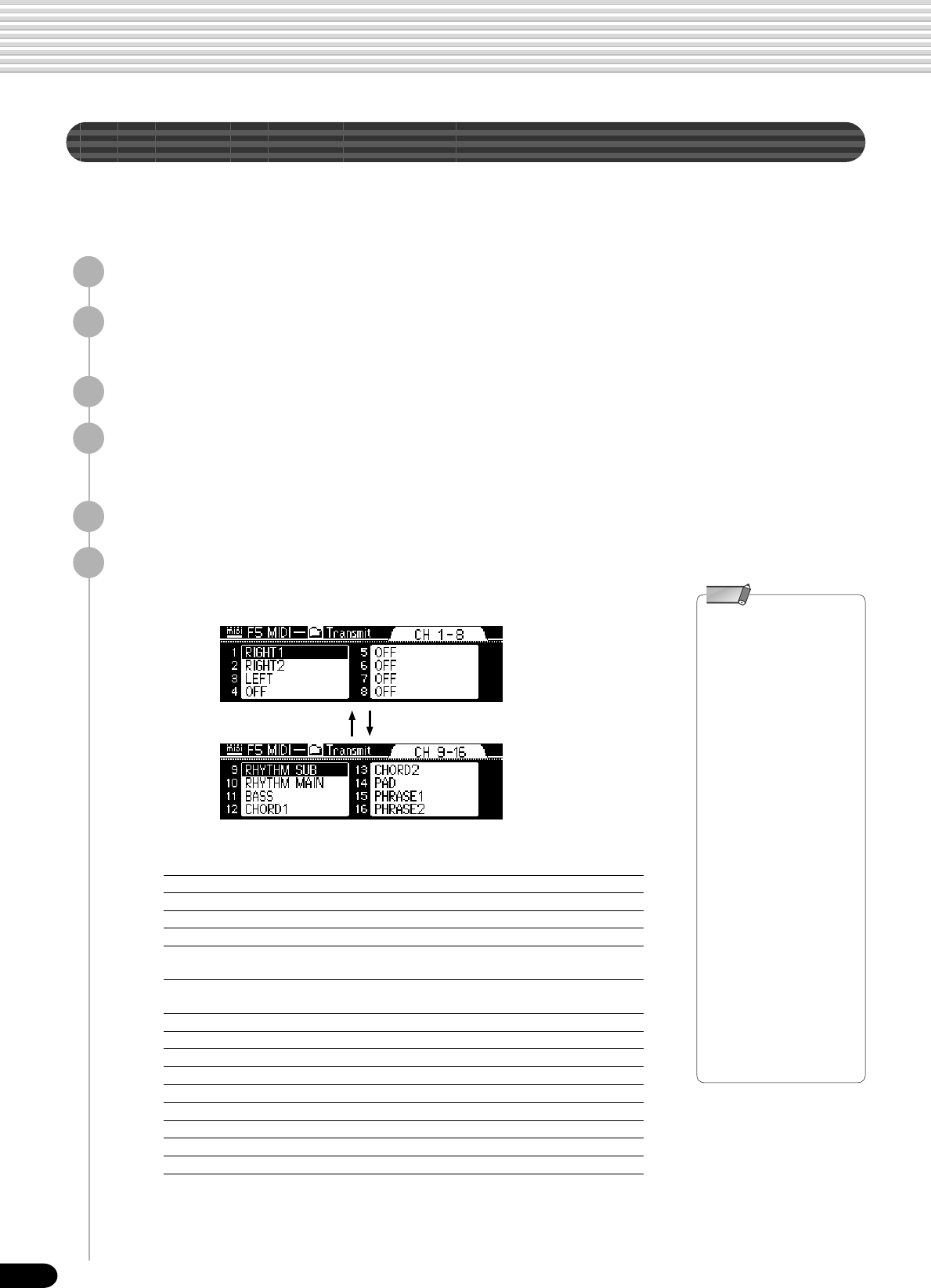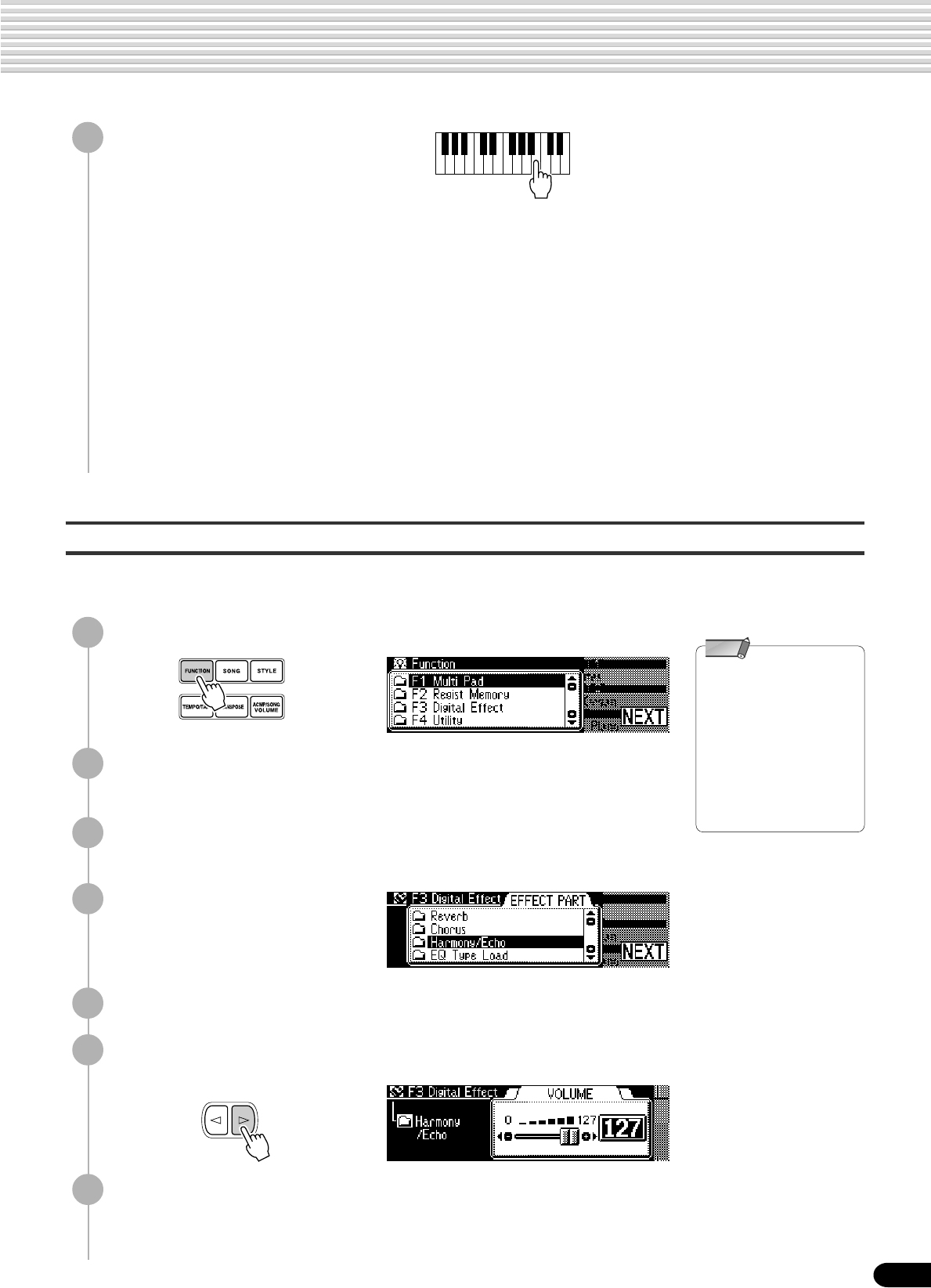 • Setup Data : Volume, Octave, Pan,