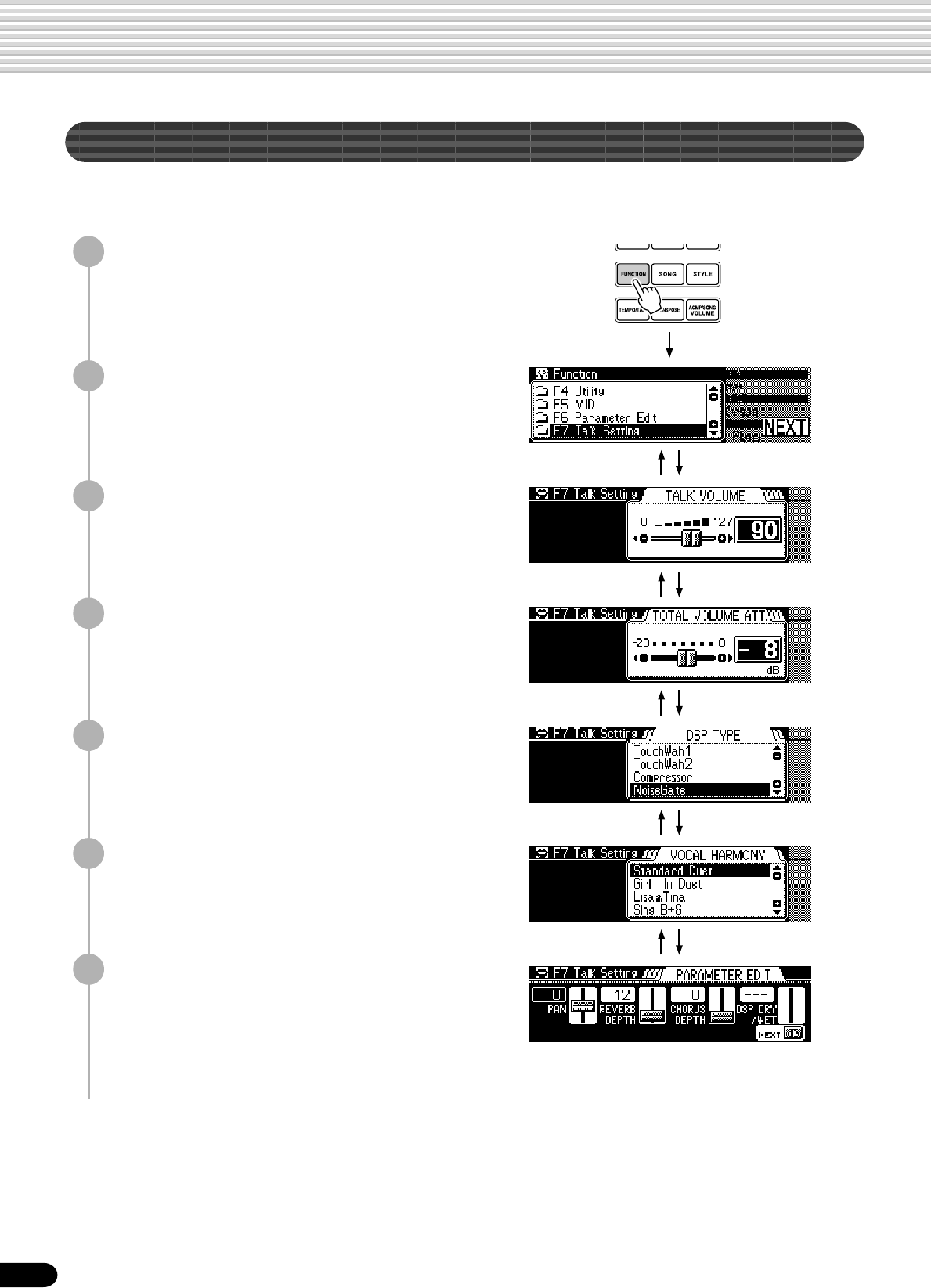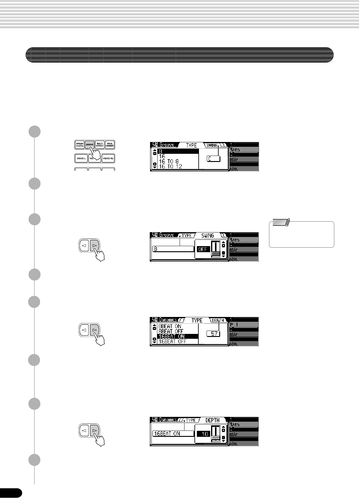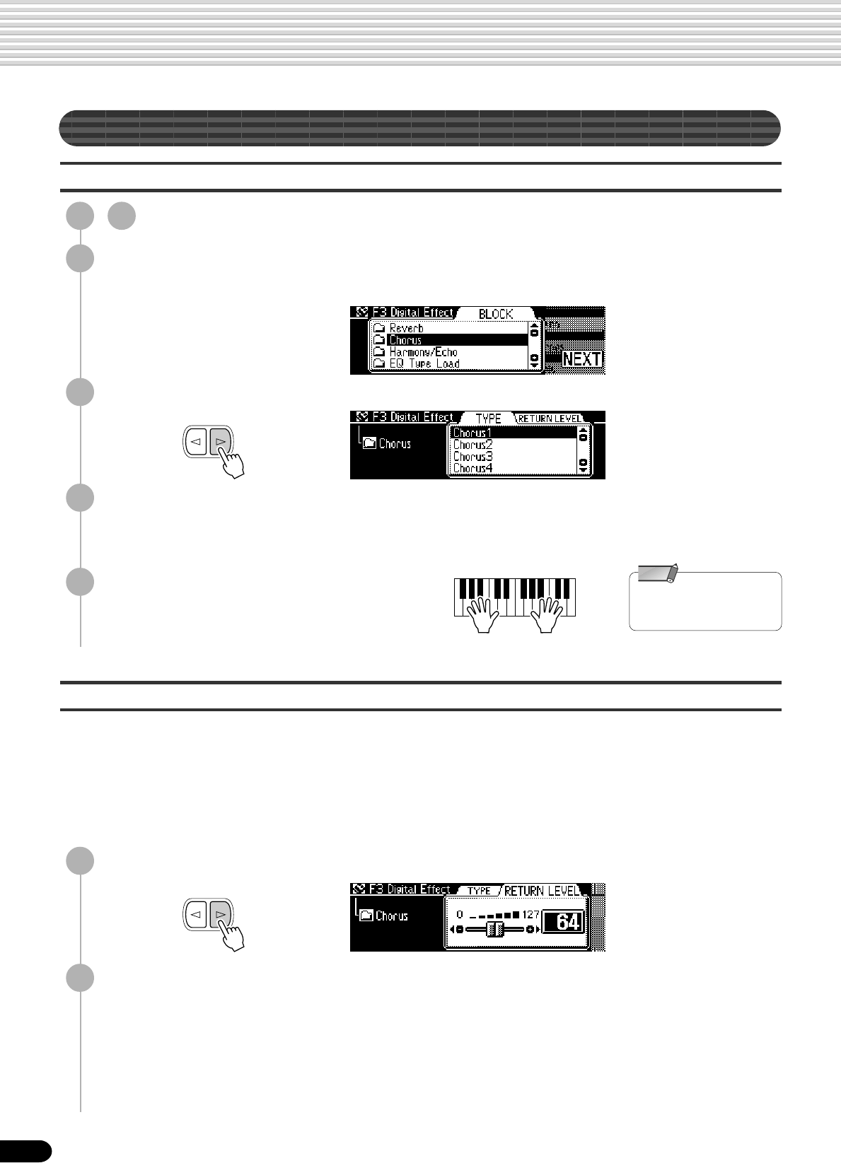 Reverb depth, Chorus depth, DSP depth